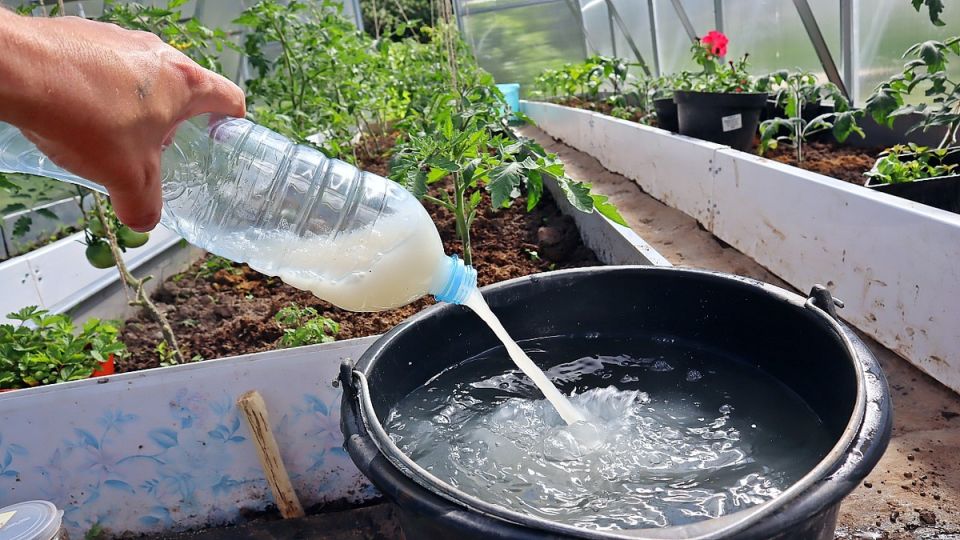 Все ингредиенты смешиваются, и раствор переливается в опрыскиватель. Опрыскивание следует проводить на томатах и других цветущих растениях в саду. Это не только поддержит здоровье растений, но и значительно повысит их продуктивность в сезон урожая.
