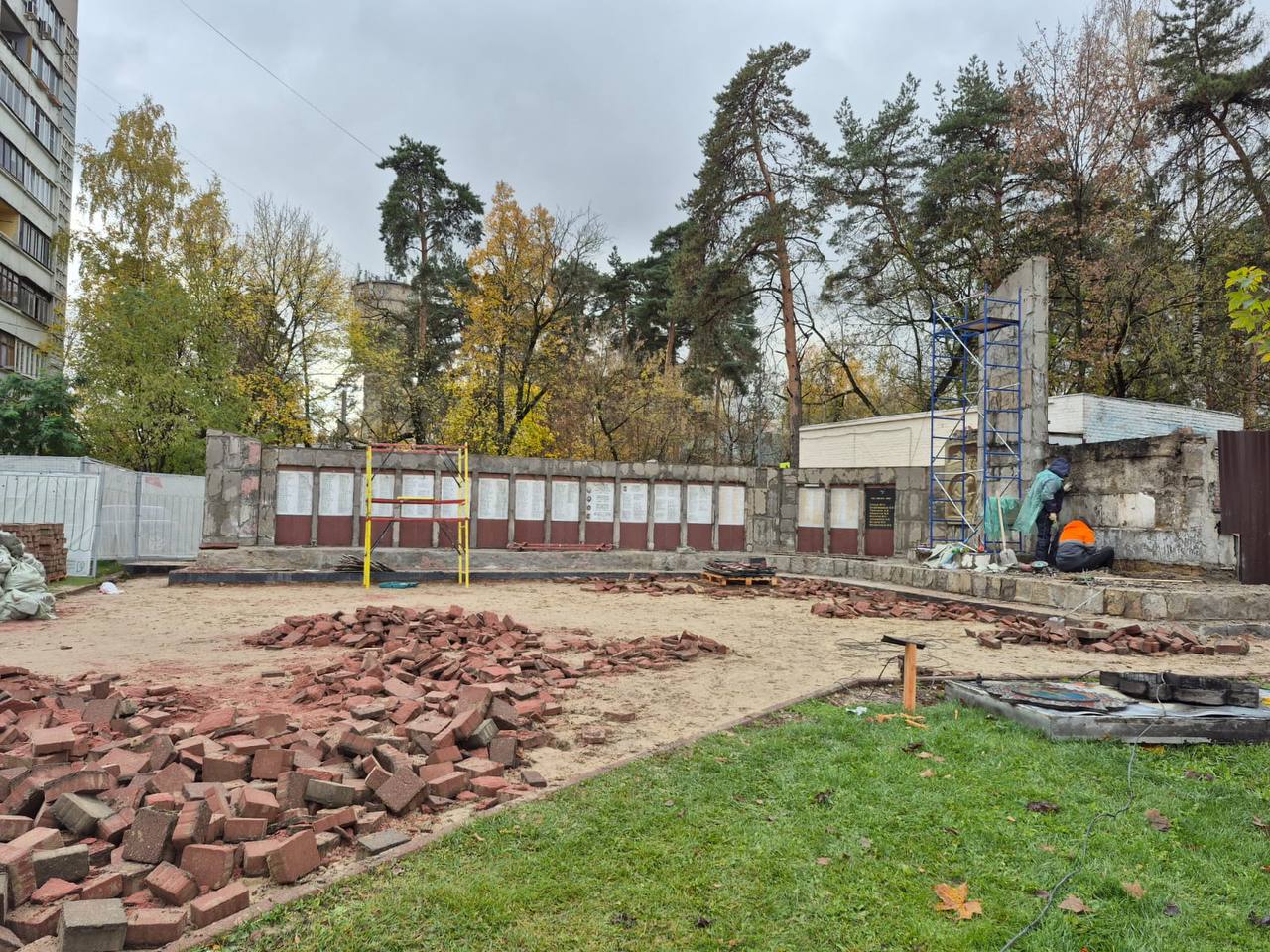 Замену облицовки Мемориала в Сквере Победы в п. Малаховка завершат до конца осени