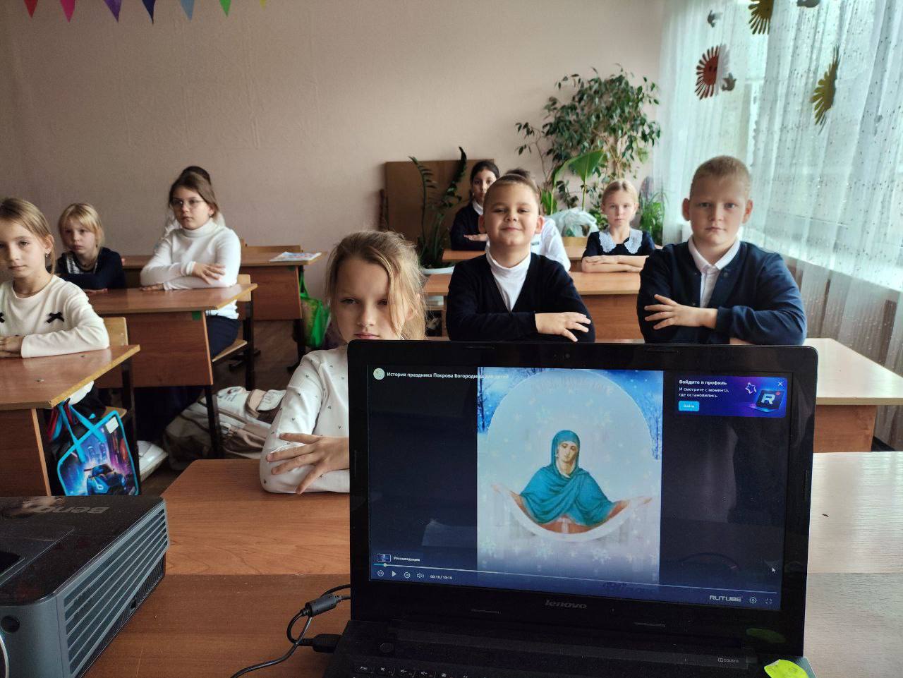 14 октября во 2 г классе МБОУ Любучанской СОШ(здание Молоди) м.о.Чехов было проведено мероприятие в рамках Православной недели, посвященное празднику Покрова Пресвятой Богородицы.