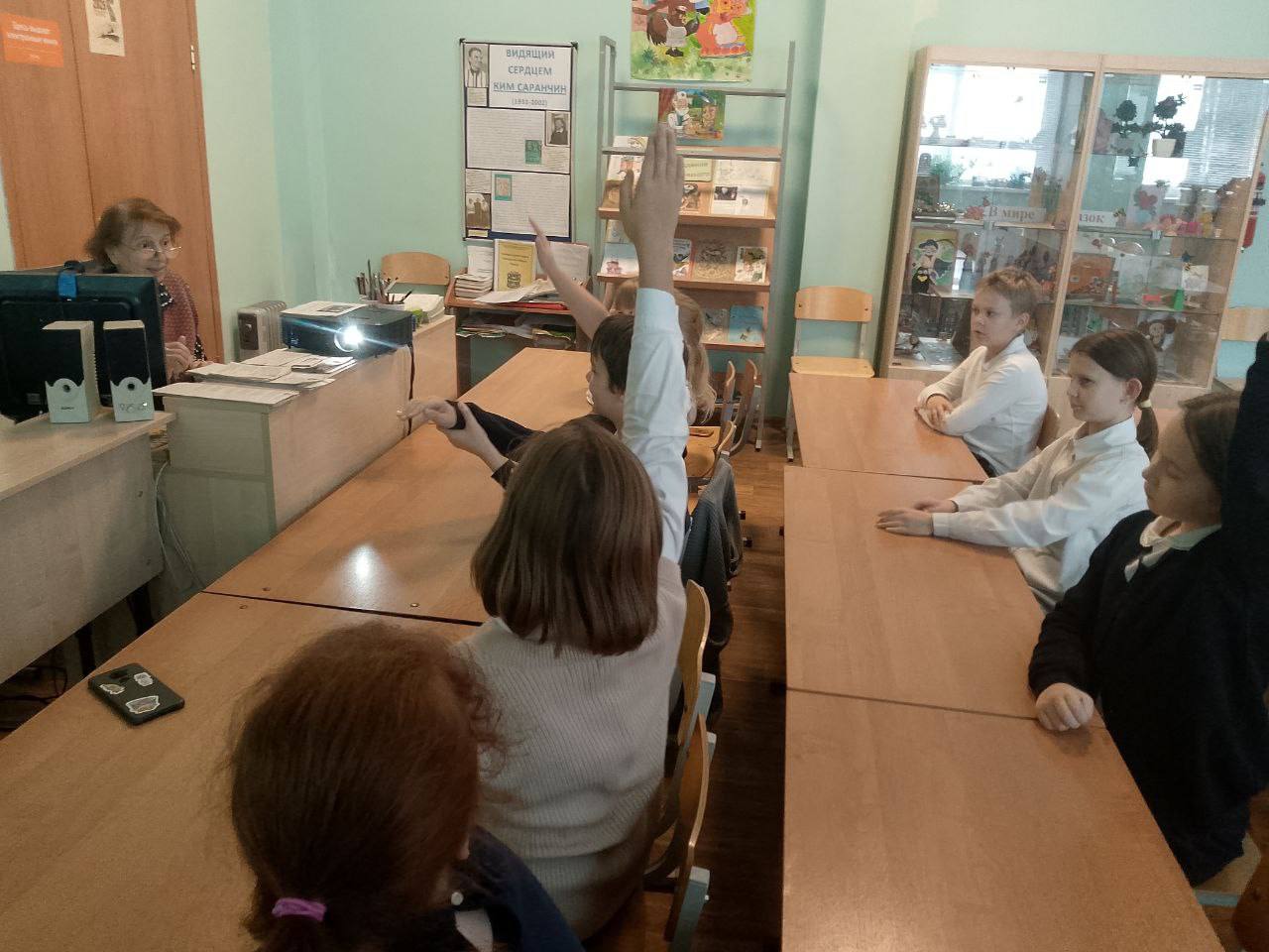 По окончании беседы учащиеся приняли участие в литературной викторине. Победителями стали: в 4а классе - Шведова Софья, Черенкова Ирина, Бритская Василиса; в 4в классе - Крутова Ульяна, Стариков Иван, Кареева Анастасия.