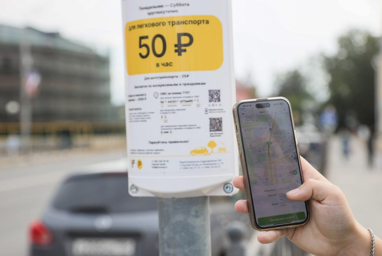 В зоне, отмеченной специальными знаками и синей дорожной разметкой, бесплатно можно оставить машину на 5 минут, а также по воскресеньям и праздничным дням. В остальных случаях час стоянки стоит 50 рублей для легкового автотранспорта, 25 — для мототранспорта.