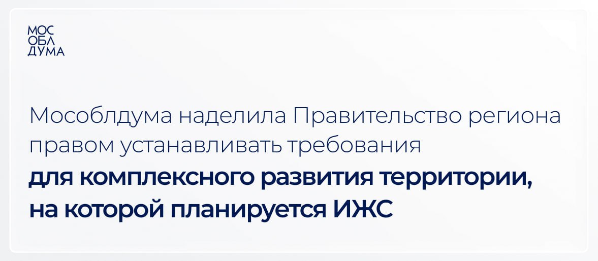 Мособлдума наделила Правительство Подмосковья правом устанавливать требования для комплексного развития территории, на которой планируется индивидуальное жилищное строительство