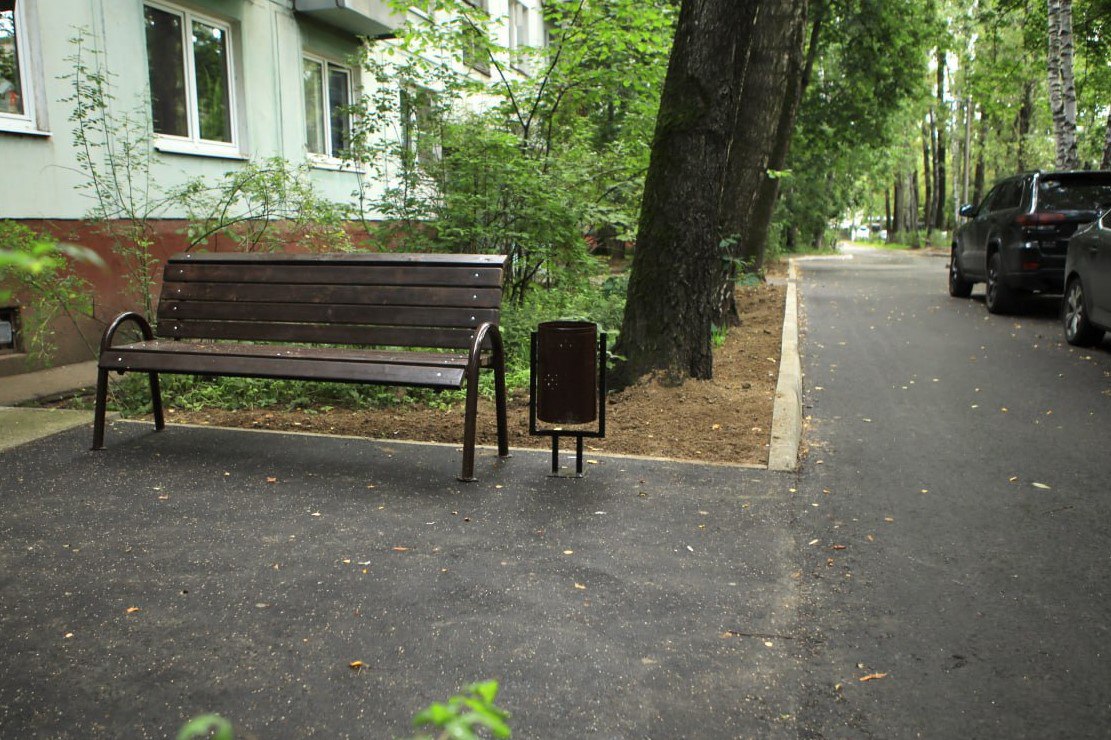 В рамках работ обновляют дорожное покрытие проездов и пешеходных дорожек, обустраивают дополнительные парковочные места, малые архитектурные формы, а также проводят озеленение.