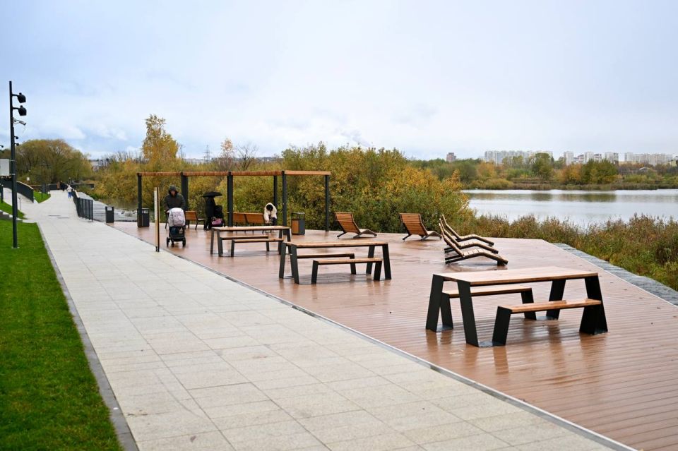 В паркеесть детские и спортивные площадки, смотровые с панорамными видами на озеро, зоны для пикника и отдыха, амфитеатры, деревянные настилы и шезлонги.
