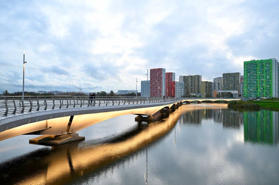 Теперь у жителей Люберец и столицы есть общее комфортное пространство для прогулок и отдыха, а путь из мкр. Зенино до метро Некрасовка стал быстрее на 15 минут. Длина моста почти 600 метров, оноборудован подсветкой, а в парке организован круговой маршрут для велосипедистов и пешеходов.