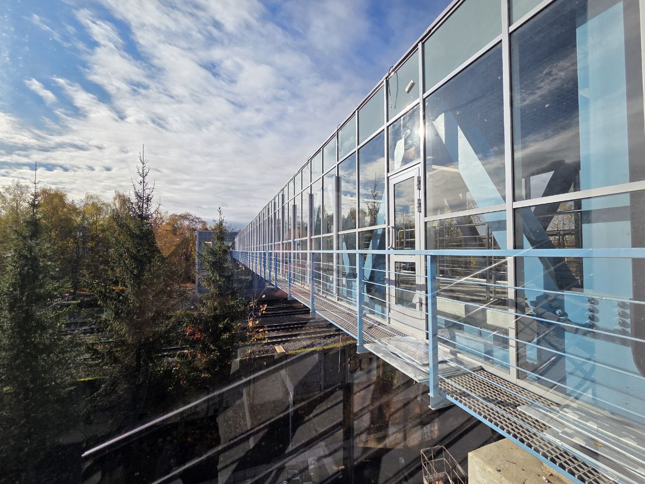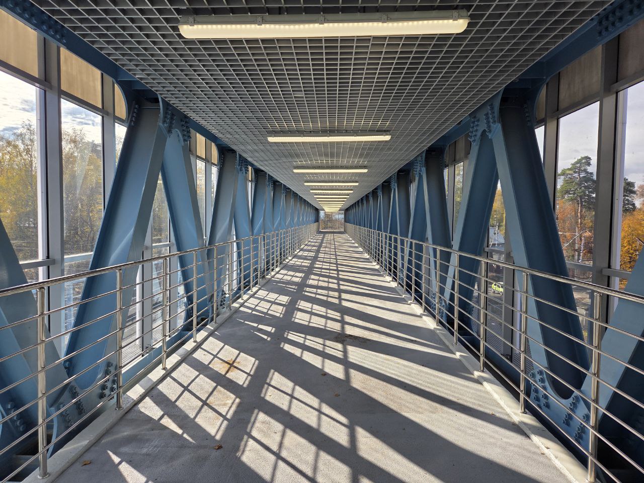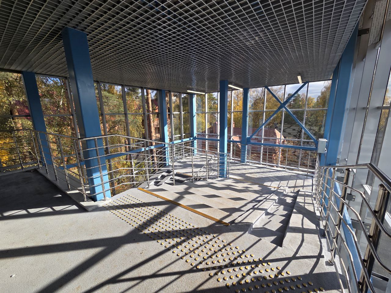 Протяженность нового перехода составляет около 76 м, а ширина пролетного строения – 4 м. Он полностью остеклен, оборудован лестничными сходами, а также приспособлен для маломобильных групп населения. Новый переход обеспечит безопасный и комфортный проход для жителей, ежедневно пересекающих ж/д пути.