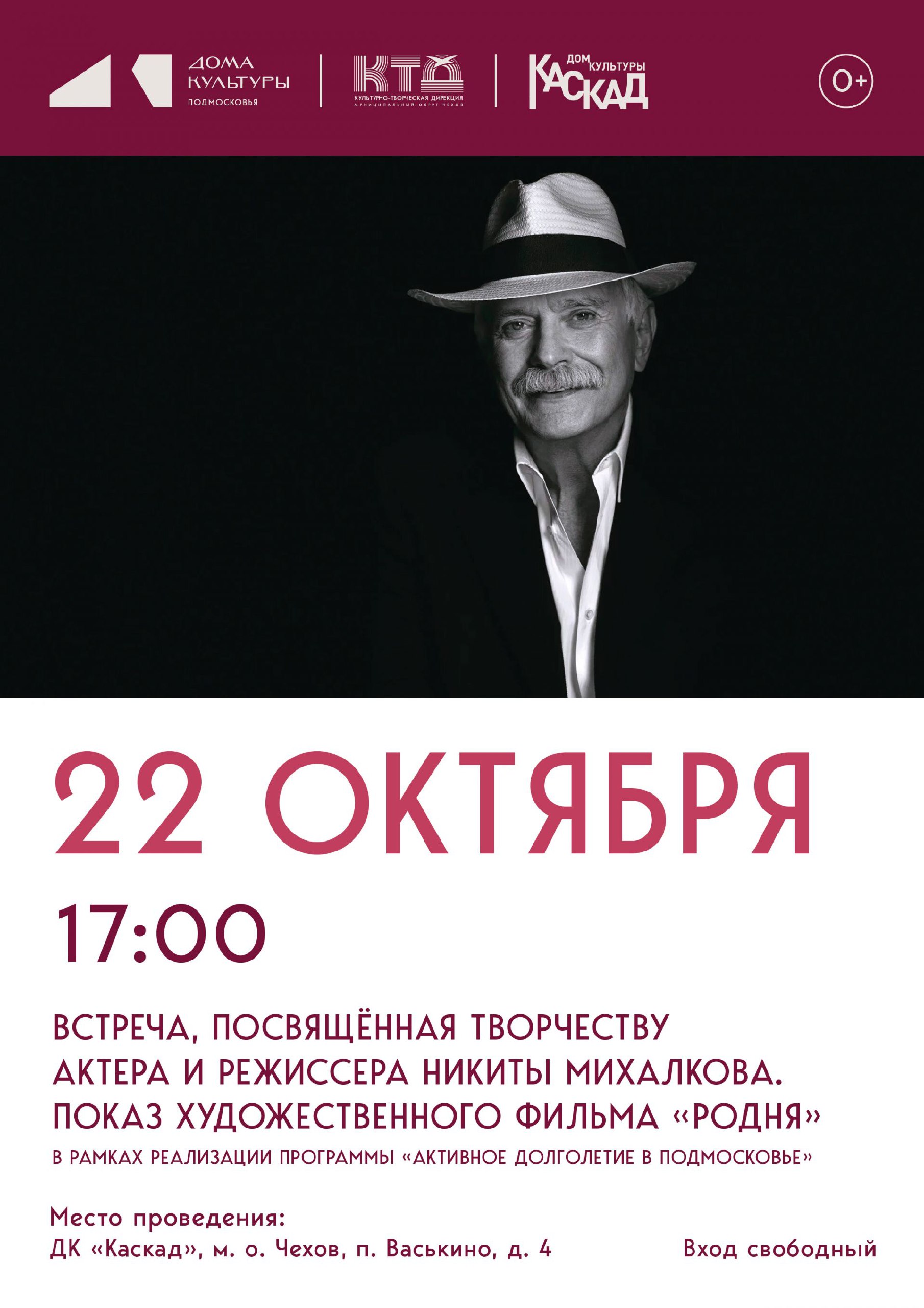 Приглашаем вас на встречу, посвященную творчеству замечательного актера и режиссера Никиты Михалкова и просмотр художественного фильма "Родня".