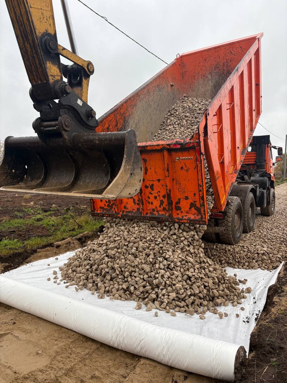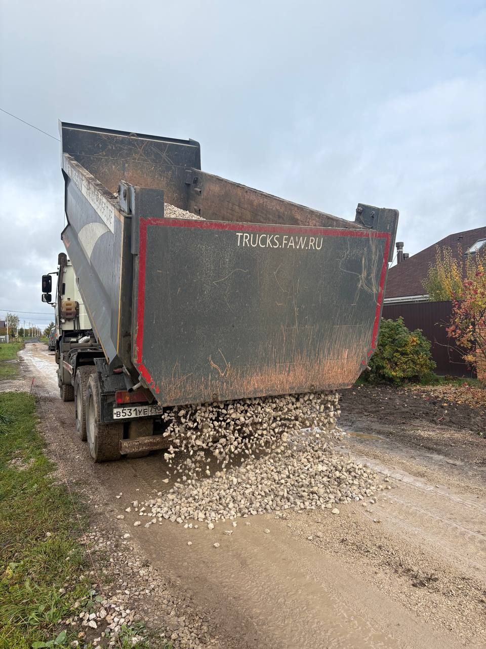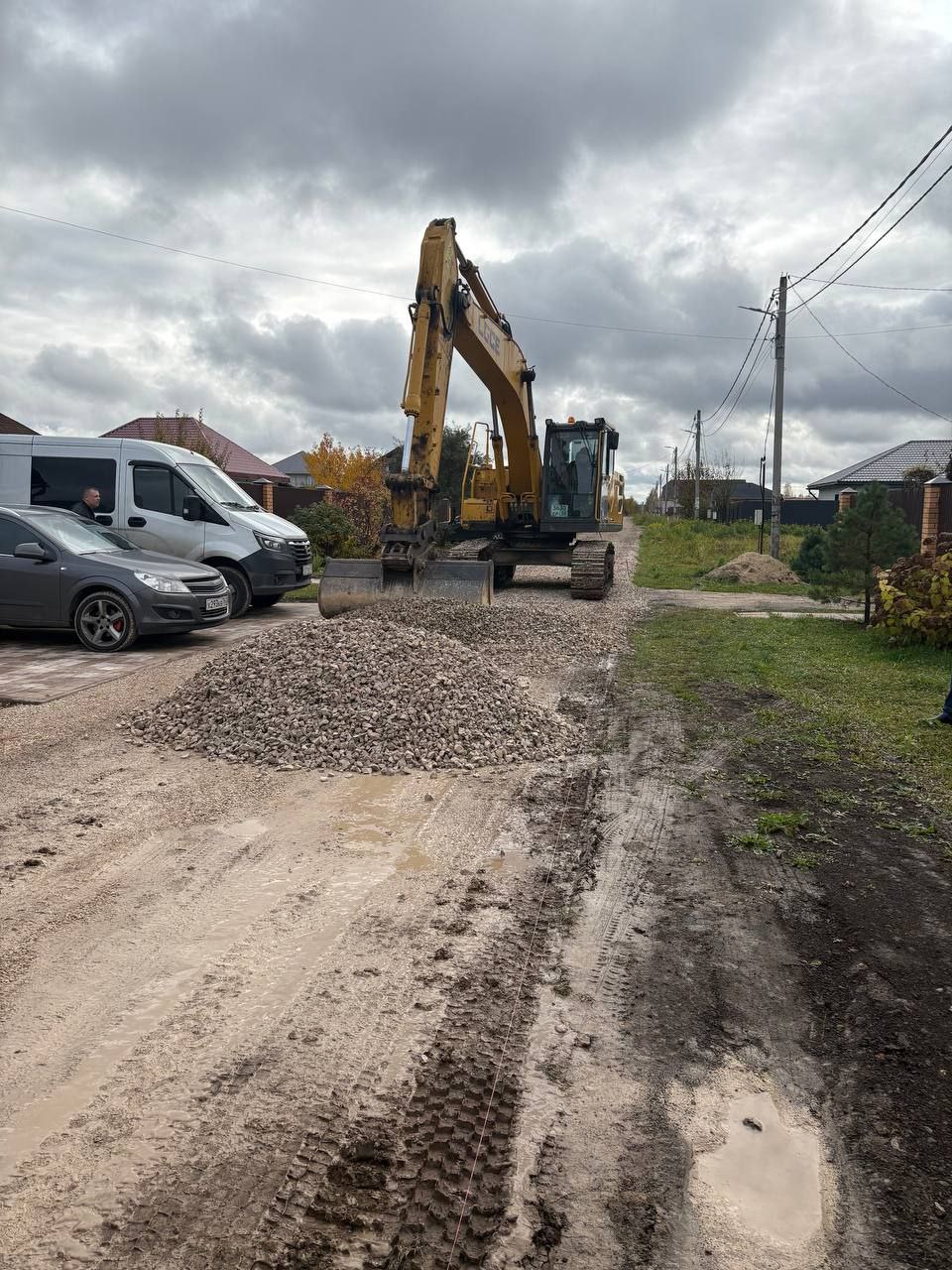 На улице Семейная в селе Липицы и на улице Полевой сейчас укладывают щебень.