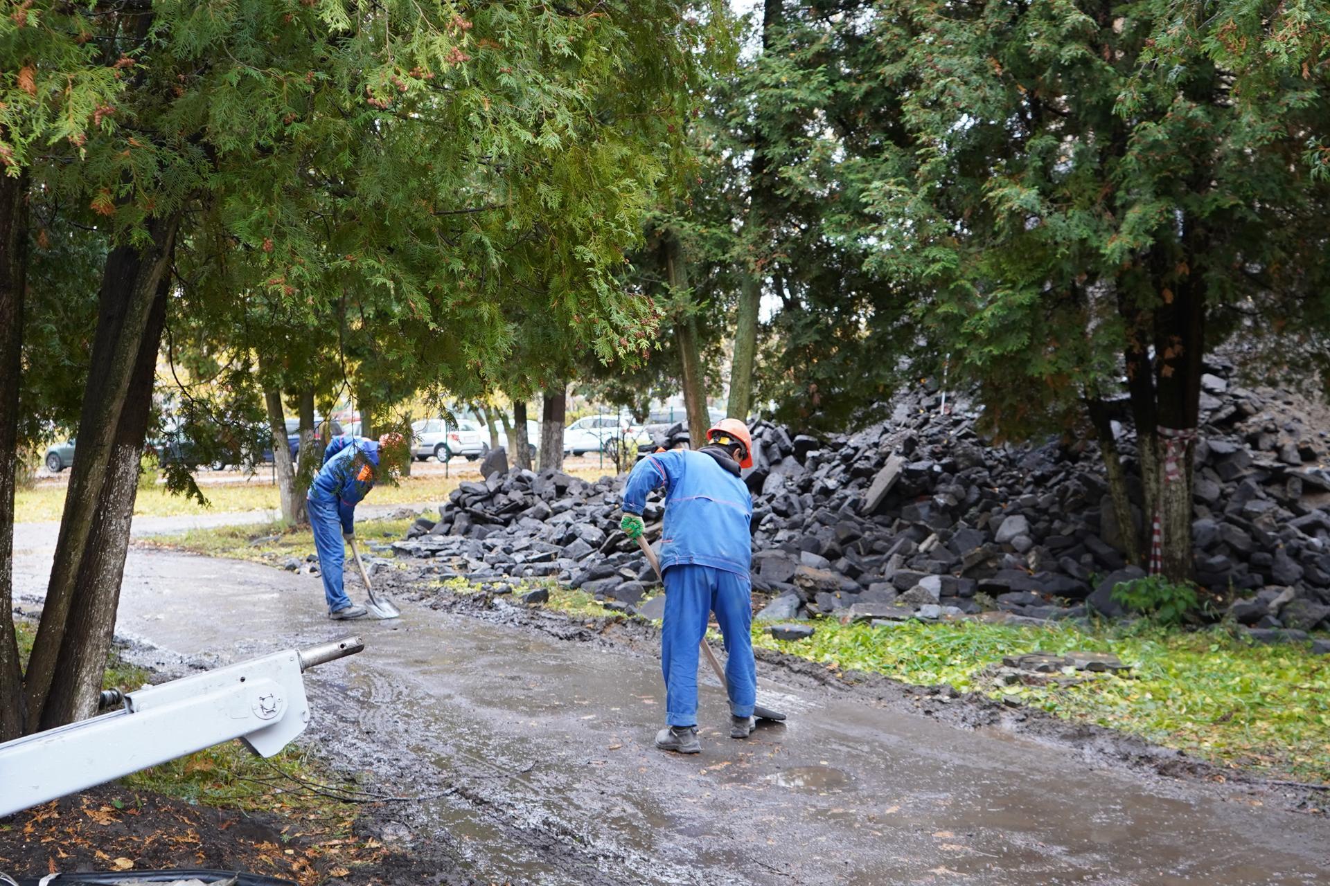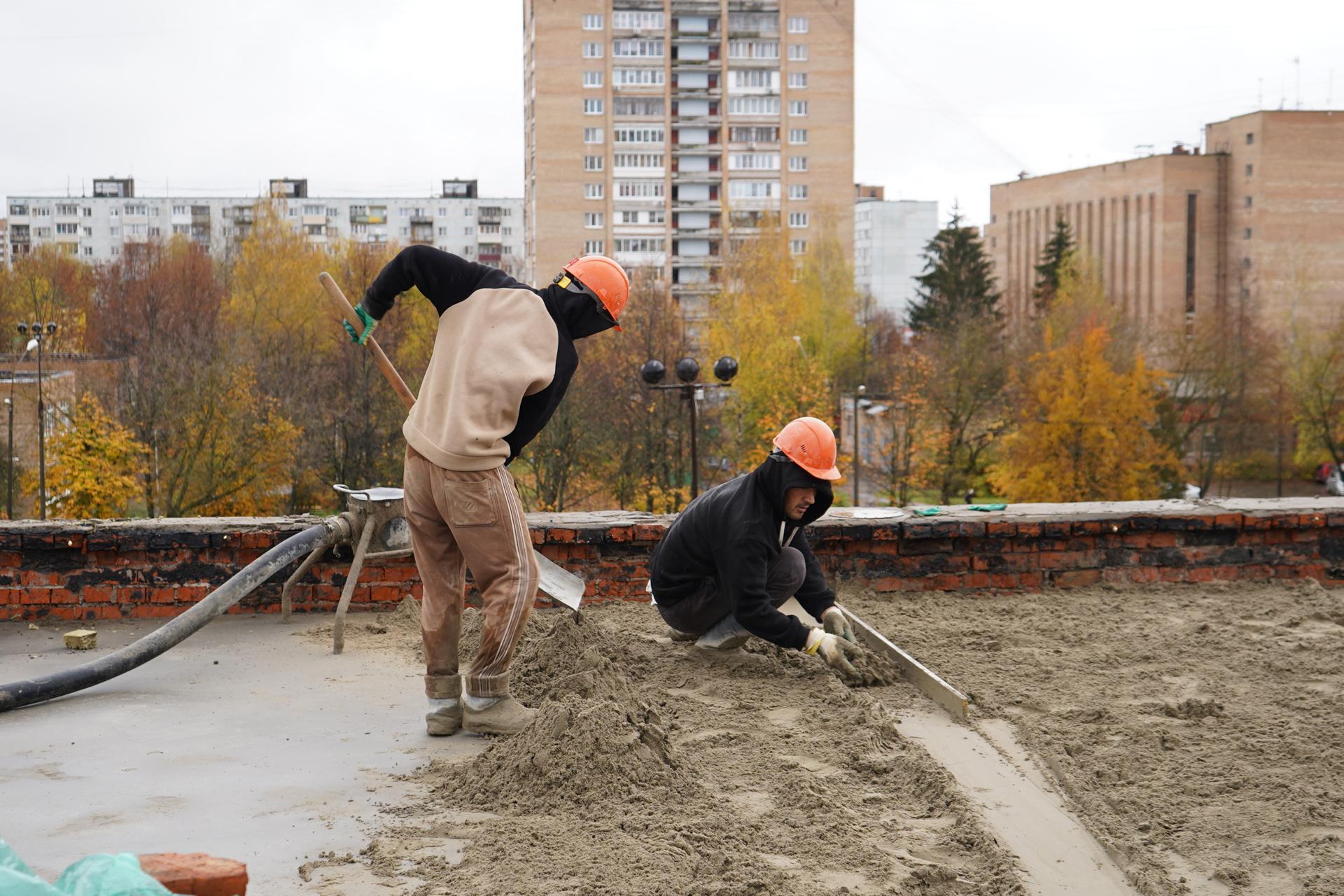 "Самая трудоёмкая часть - снос стяжек, который даёт объёмный строительный мусор. Параллельно идёт замена кровли, до конца месяца планируем начать работы по обновлению фасада. На объекте ежедневно трудятся 50 сотрудников, при необходимости привлекаем спецтехнику", - уточнил Олег Камболов.