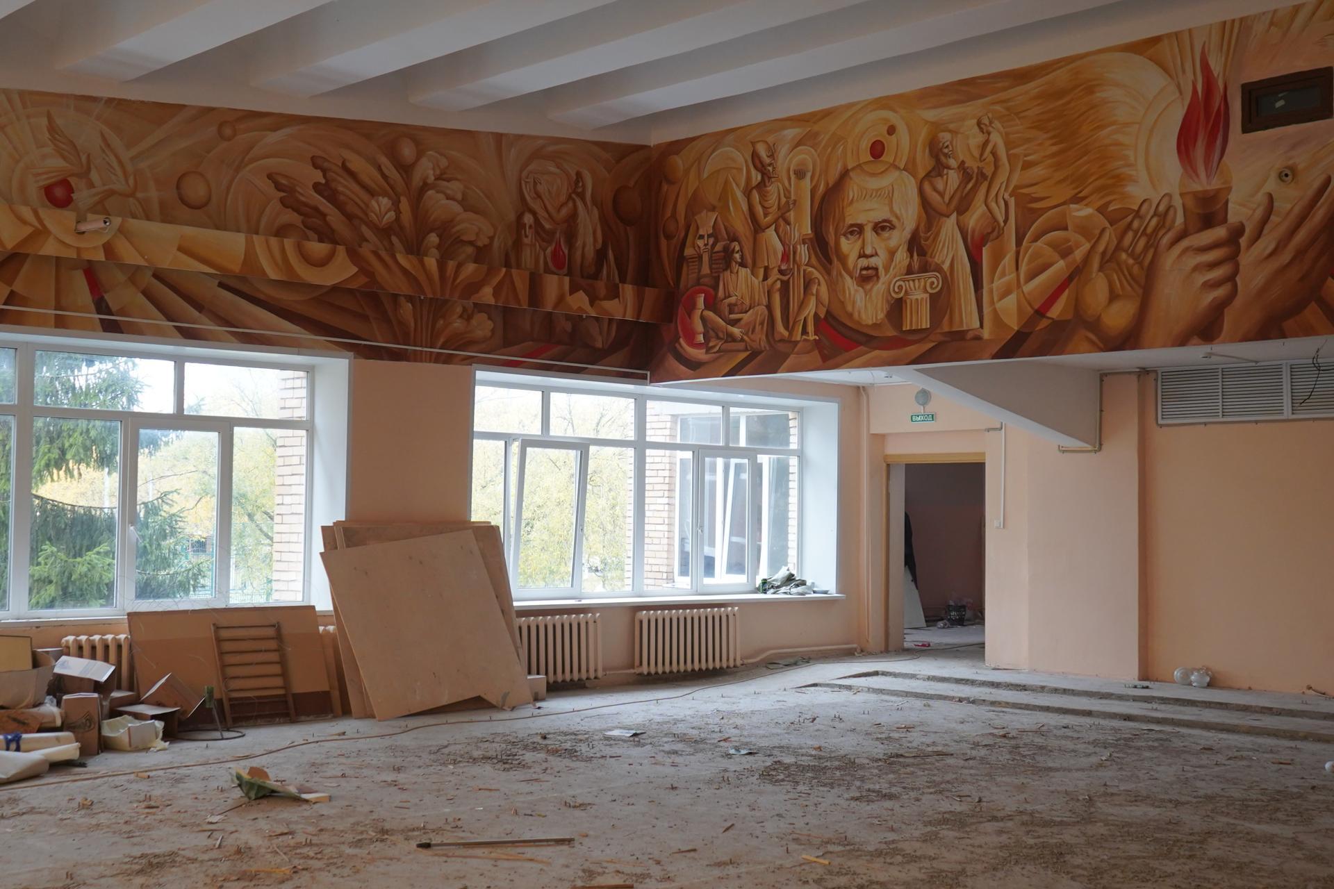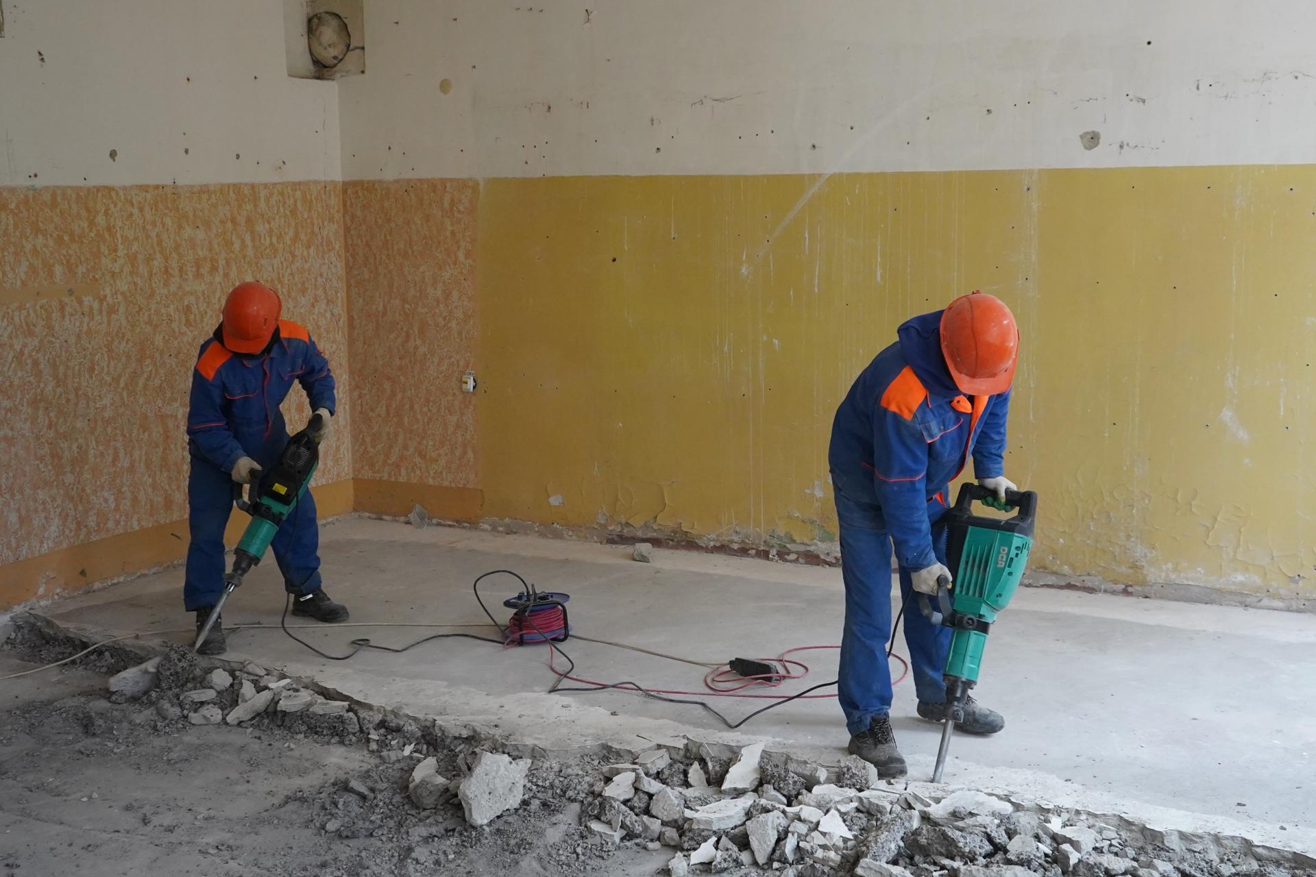 Строители начали с демонтажных работ: удаляют стяжку полов до перекрытий. На зиму оставили в рабочем состоянии отопление, однако в процессе ремонта в здании заменят все сети, включая водопровод и электричество. Поменяют стеклопакеты, внутреннюю отделку и фасад. Обновление ждёт все кабинеты, актовый и спортивный залы, пищеблок.