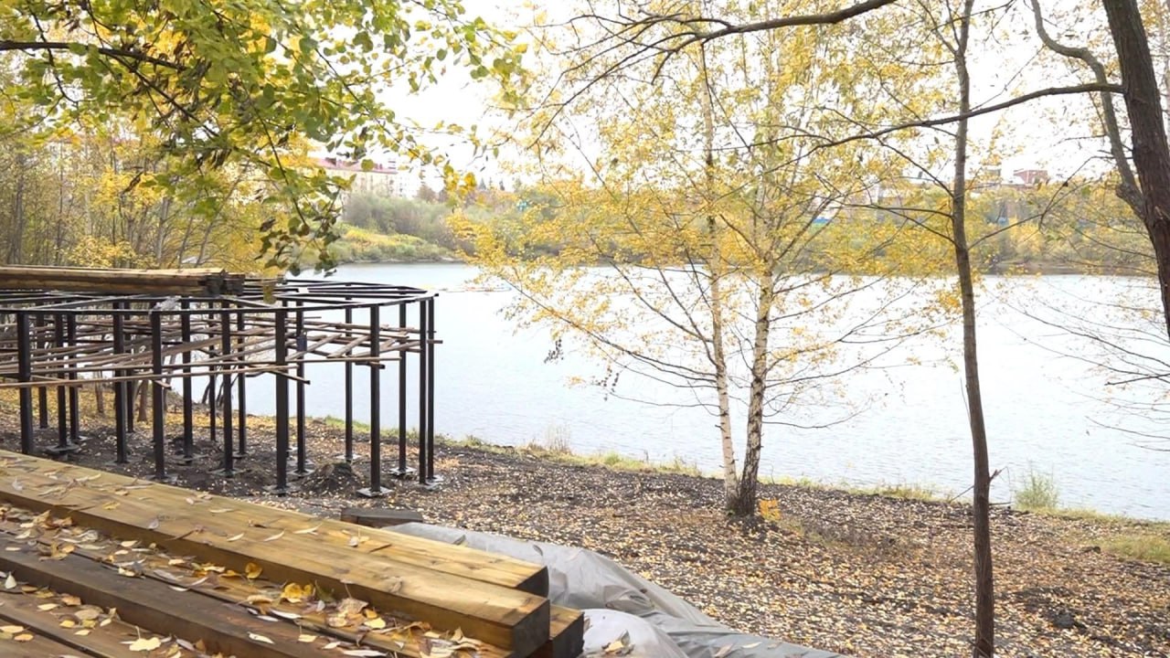 В настоящее время строители занимаются монтажом смотровой беседки и городского балкона – уже установлены сваи и началась укладка настила.