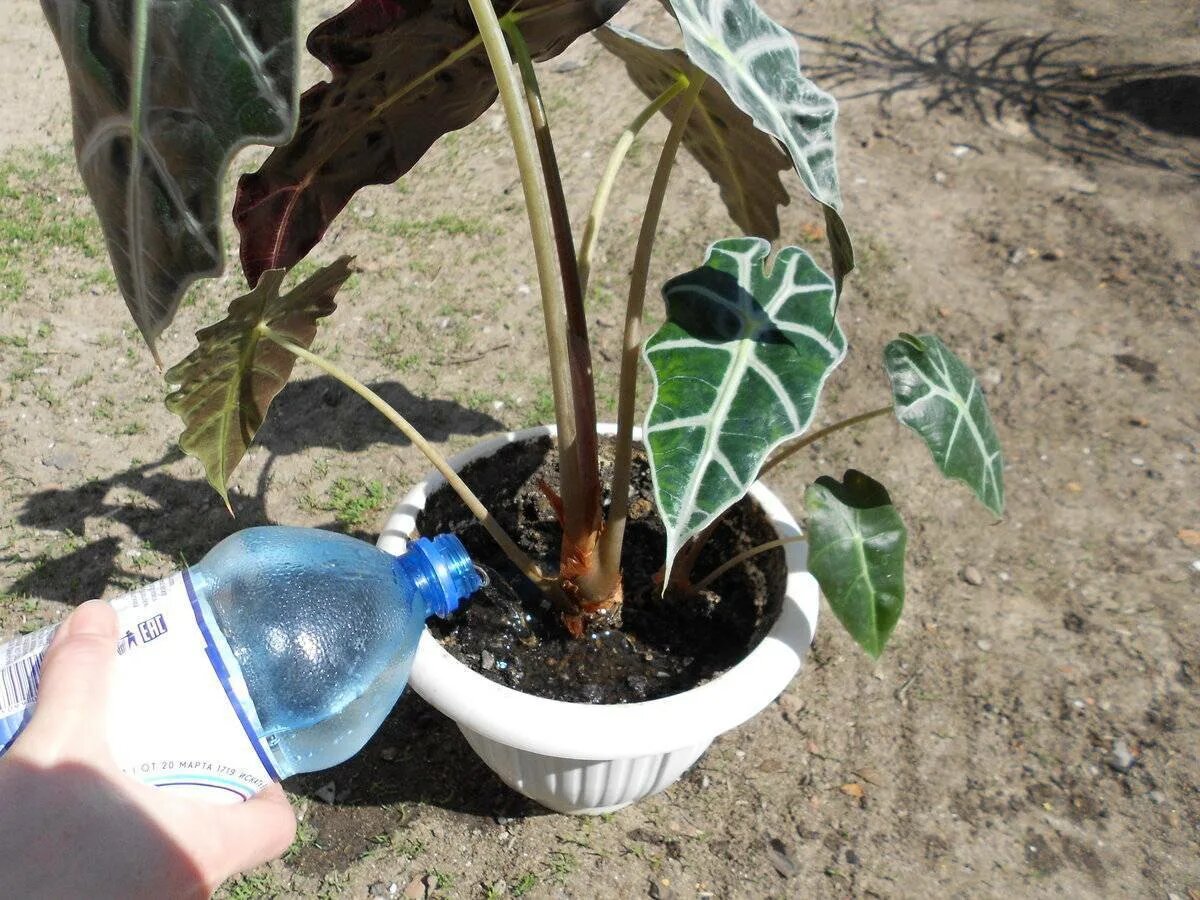 - Частота ухода: Алоказия нуждается в умеренном поливе. Рекомендуется проверять уровень влажности почвы и поливать растение, когда верхний слой подсохнет на глубину 2-3 см. Обычно это происходит раз в неделю, однако в зависимости от условий в вашем доме частота полива может варьироваться.
