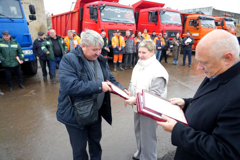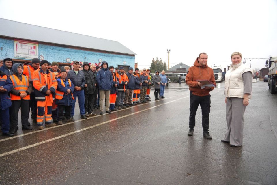 Ранним утром заехала посмотреть готовность коммунальной техники к предстоящему зимнему периоду. И поздравила работников дорожного хозяйства с предстоящим профессиональным праздником.