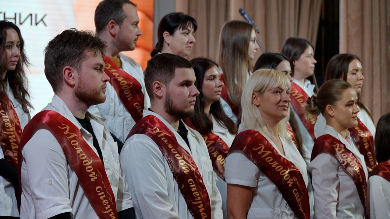 Поздравил медицинских работников и вручил награды заслуженным врачам, медсёстрам и молодым специалистам.