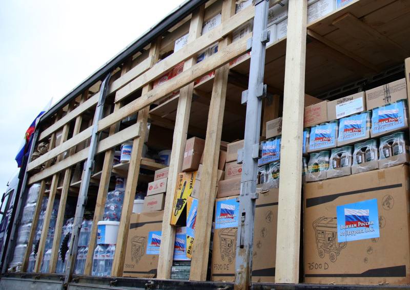 Сегодня на фронт отправили внедорожники, мотоциклы, квадрокоптеры, запчасти и инструменты, телевизоры, генераторы, морозильники и рации. Помимо снаряжения собрали продукты питания: 250 кг элитной колбасы и 200 кг осетинского сыра, сделанных на заказ, а также саморазогревающиеся обеды, халву, пряники, кофе и более 8 тысяч бутылок чистой питьевой воды.