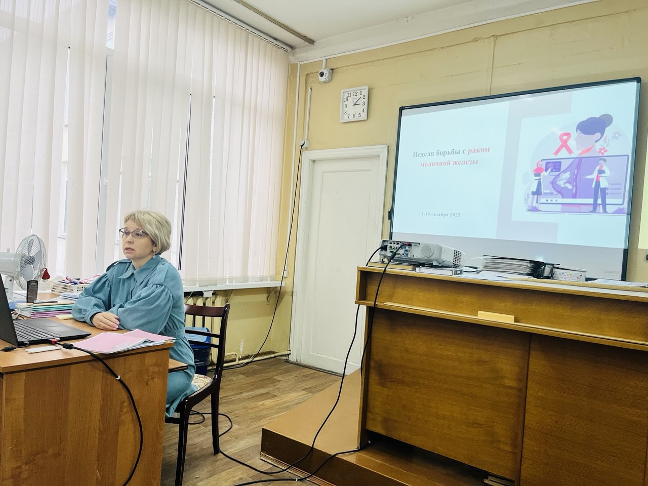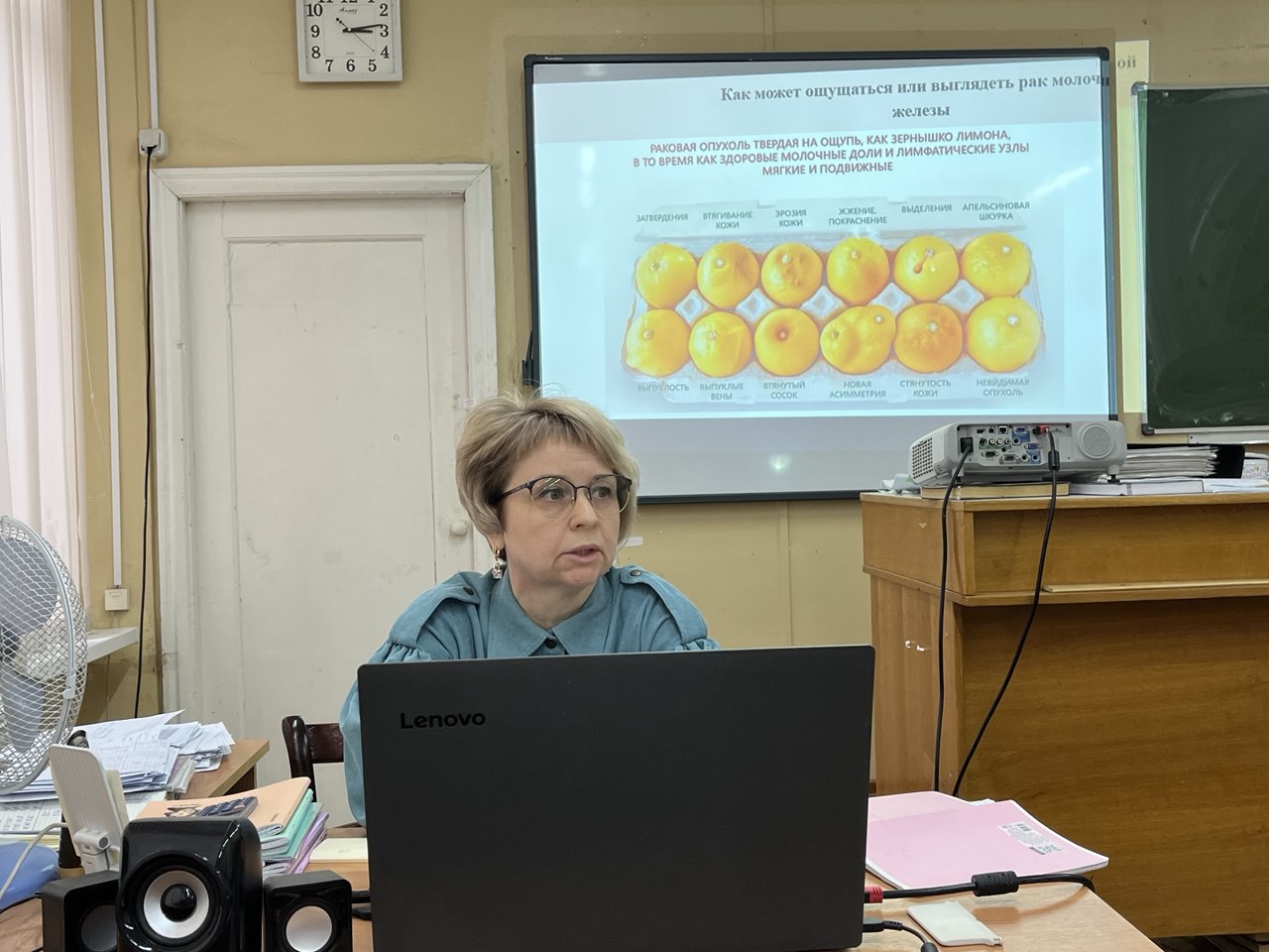 В России объявлена Минздравом Неделя борьбы с раком молочной железы – самым распространенным онкологическим заболеванием у женщин. Лекция о профилактике болезни состоялась для педагогов школы № 1, которую прочитала онколог Анна Хотулёва. Мероприятие прошло в рамках проекта главного врача Чеховской больницы Андрея Попова «Навстречу здоровью». Онколог рассказала слушателям об этом виде рака, развеяла мифы о нем и объяснила методы самообследования.