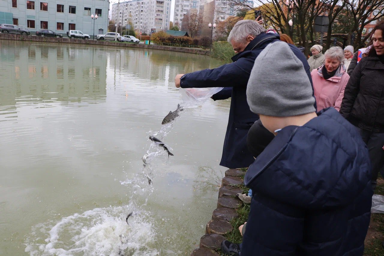 Директор управления экологии Алексей Королев сообщил, что в этот раз в пруд запущены три вида рыб: толстолобик, карп и вьюн. Толстолобик поможет очистить водоем от вредных микроэлементов, выделяющихся при цветении воды. Карп будет собирать органику со дна пруда, а вьюн добавит биоразнообразие.