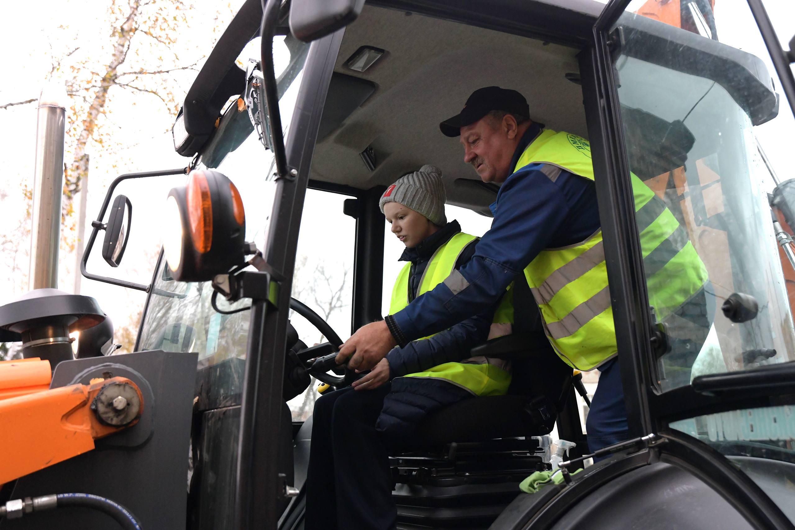 А вчера в МКУ «ЖКХ и благоустройство» побывали ученики одной из школ Дмитрова. Им не просто показали мощные машины, но и дали уникальный шанс почувствовать себя в роли водителя такой техники.