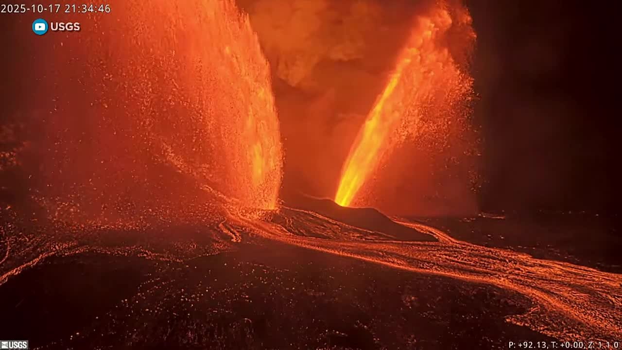Это один из самых активных в мире вулканов. Фонтаны лавы поднимаются на высоту до 450 метров, а потоки расплавленной породы освещают окрестности.