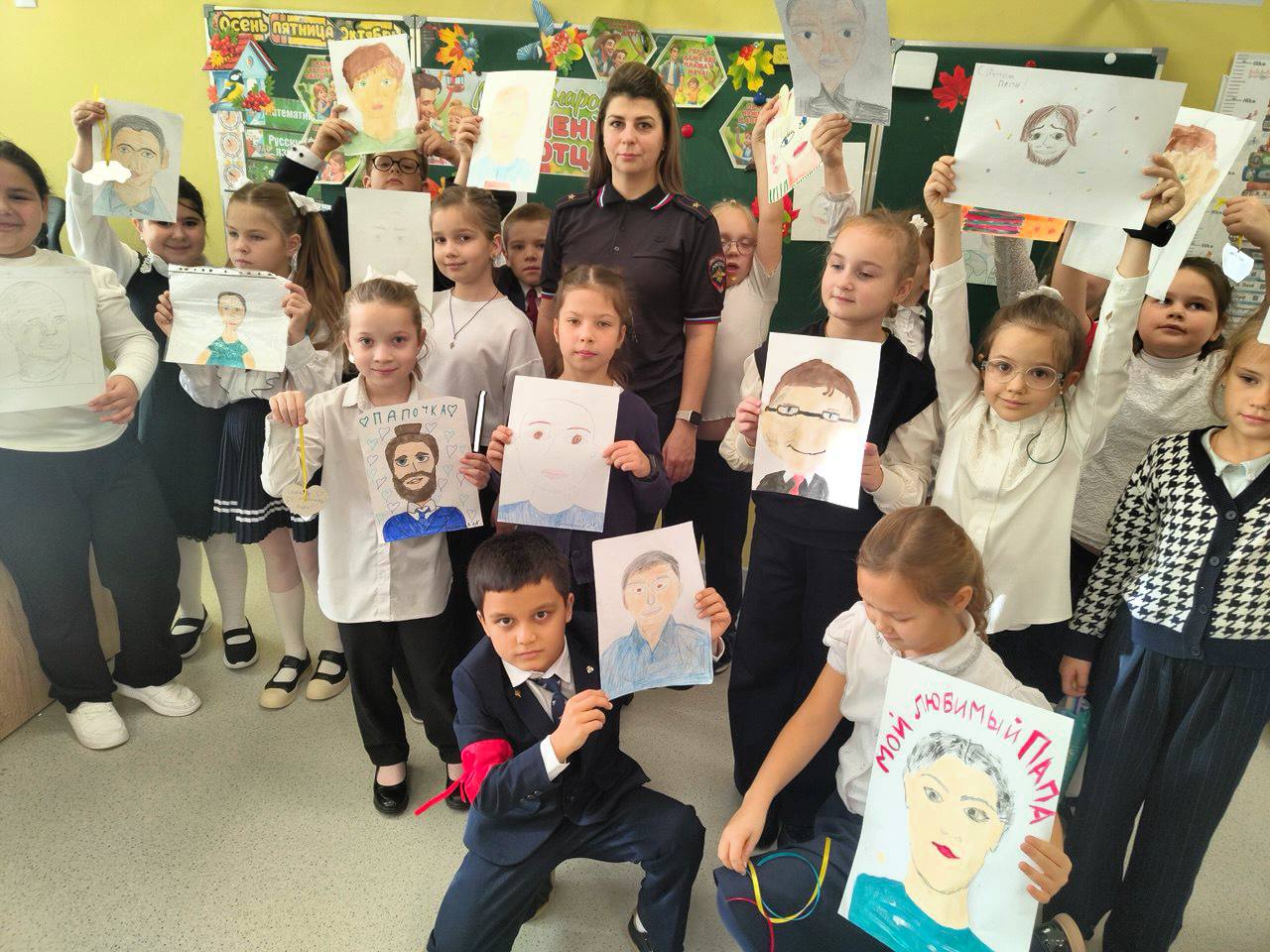 В рамках урока дети читали трогательные стихотворения, посвященные своим отцам, и рисовали их портреты, выражая свою любовь и признательность.