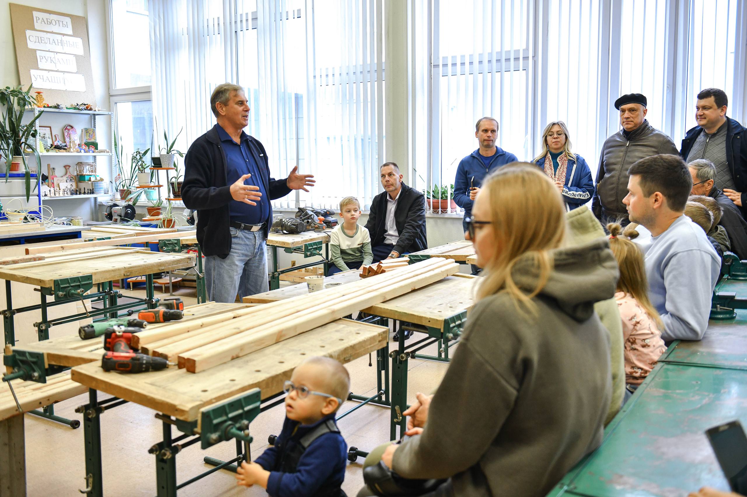 Также в мастерской школы «Флагман» для химчан провели мастер-класс по изготовлению скамеек. Дети и взрослые под руководством опытных наставников сверлили, пилили и шлифовали доски. Затем все переместились на школьный двор, где участники получили инвентарь и высадили молодые ивы. Всего было высажено 20 деревьев.