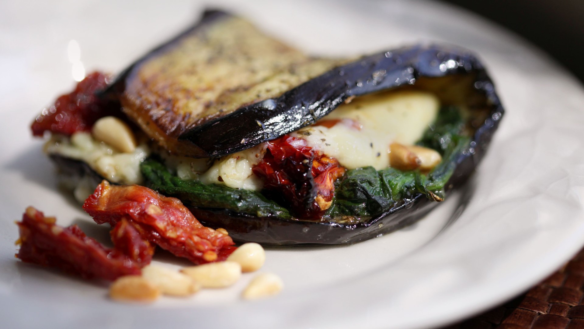 На отдельной сковороде пассеровать измельченный чеснок, тертый имбирь. Затем добавить специи, мед, лимонную цедру и выжать сок из цитруса. После этого положить готовые баклажаны и тушить ровно десять минут. Подавать, посыпав свежей зеленью, делится рецептом портал Мarie Сlaire.