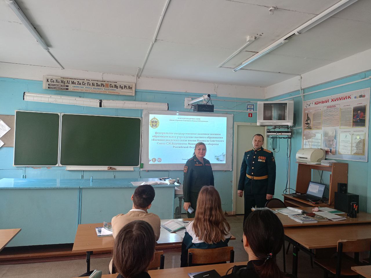 16.10.2025 МБОУ СОШ № 8 посетили представители Военной Академии связи имени Маршала Советского Союза С. М. Будённого из Санкт-Петербурга.