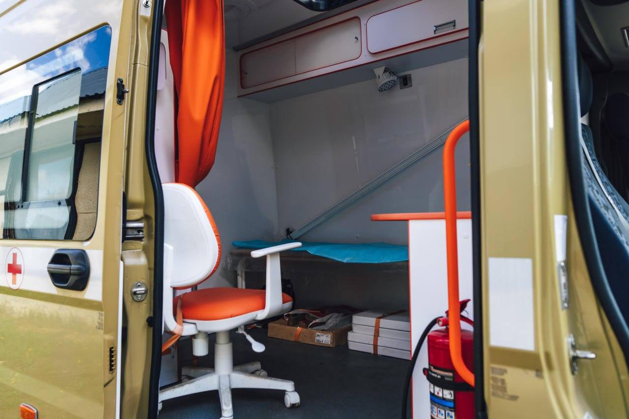Передвижной фельдшерско-акушерский пункт оснащён современным оборудованием и необходимыми препаратами.