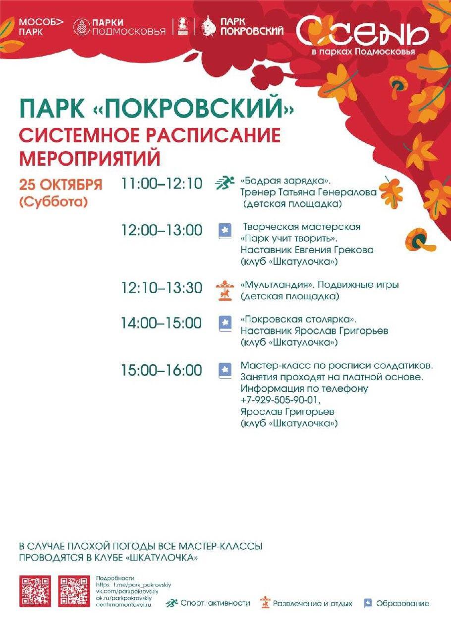 В парке «Покровский» г. Хотьково все желающие могут принять участие в открытых тренировках по скандинавской ходьбе, а юных гостей парка приглашают в творческую мастерскую.