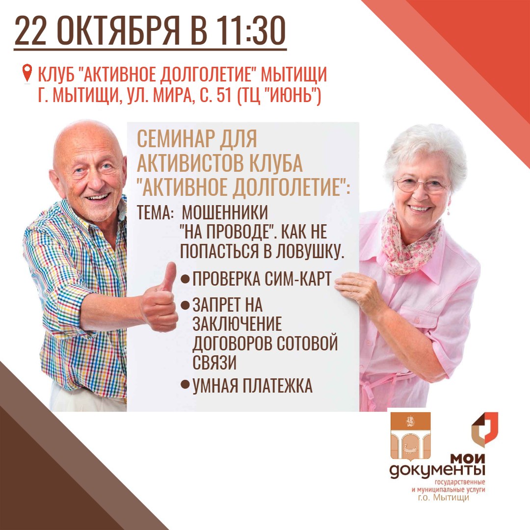 МФЦ нашего округа приглашает граждан старшего поколения 60+ на семинар.