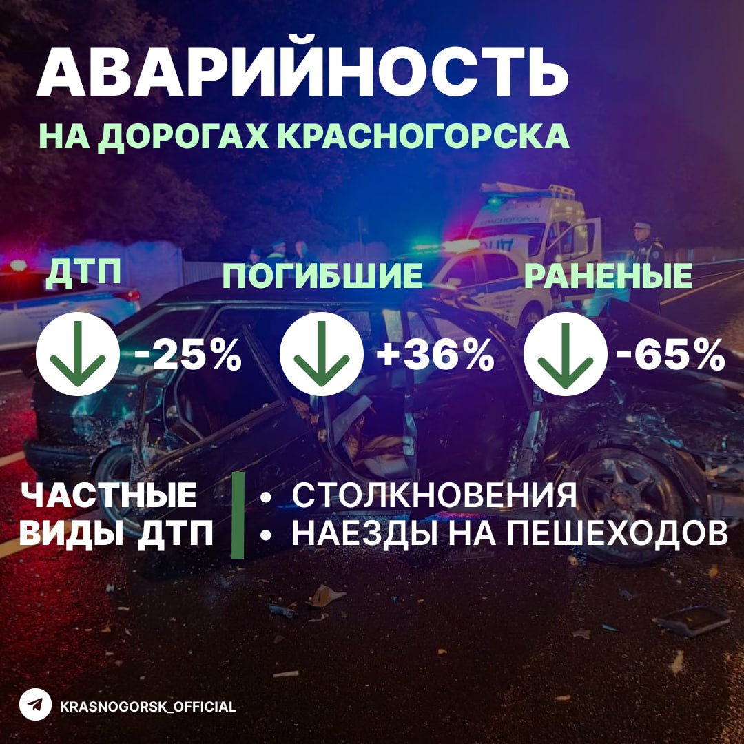 На территории Красногорска за неполных 10 месяцев 2025 года произошло 48 ДТП, в которых пострадали 47 и погибли 11 человек. За аналогичный период прошлого года в результате 64 аварий было 72 пострадавших и 4 погибших.