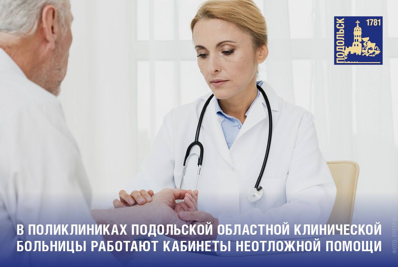 В поликлиниках Подольской областной клинической больницы работают кабинеты неотложной помощи