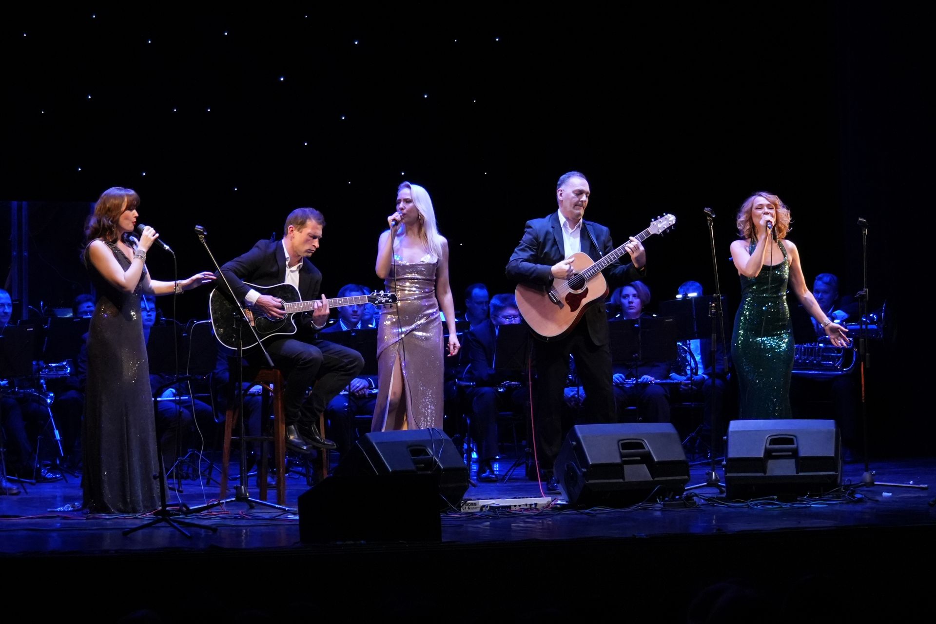 3 очаровательные солистки ансамбля — Светлана Славная, Алина Дубровская и Ольга Шабанова в разных сценических костюмах исполнили популярные эстрадные песни и классические джазовые композиции в авторской обработке.