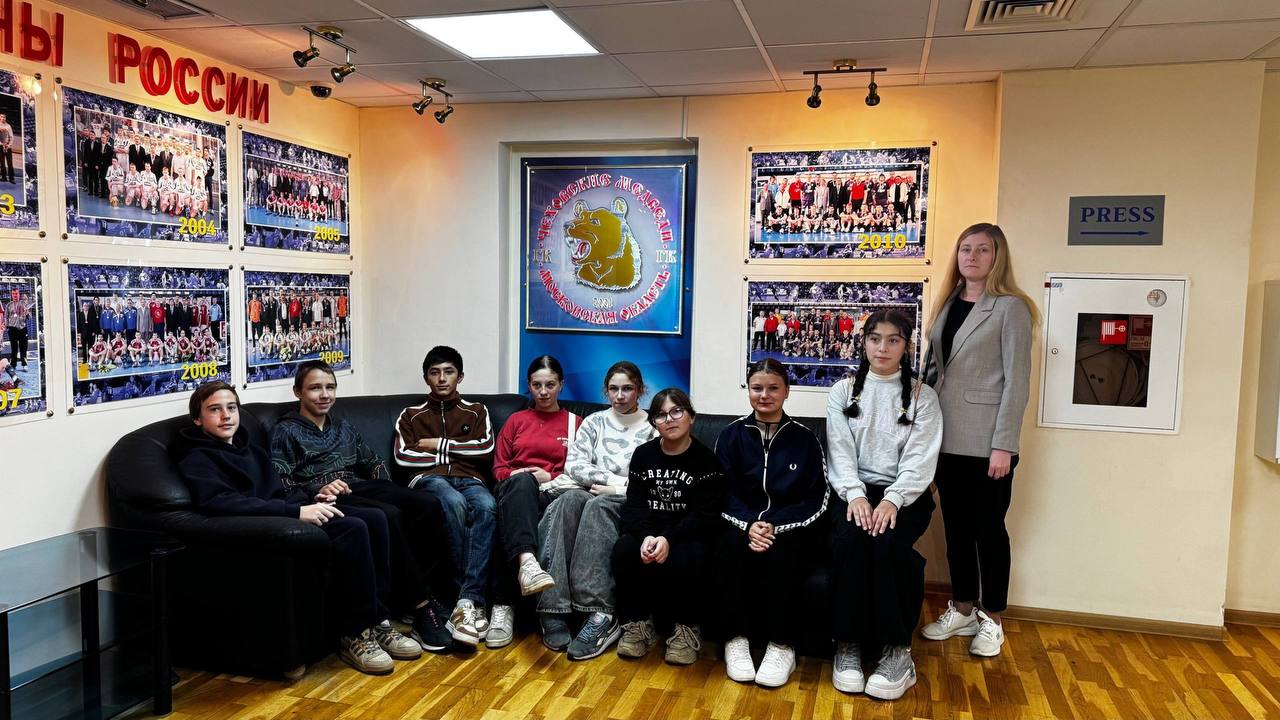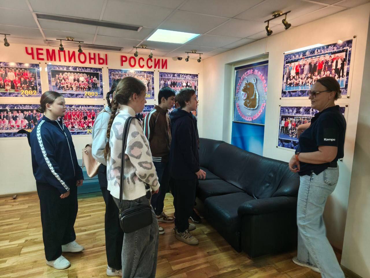 Ребята побывали на многих локациях: стадион, радиорубка, раздевалка, аллея чемпионов)