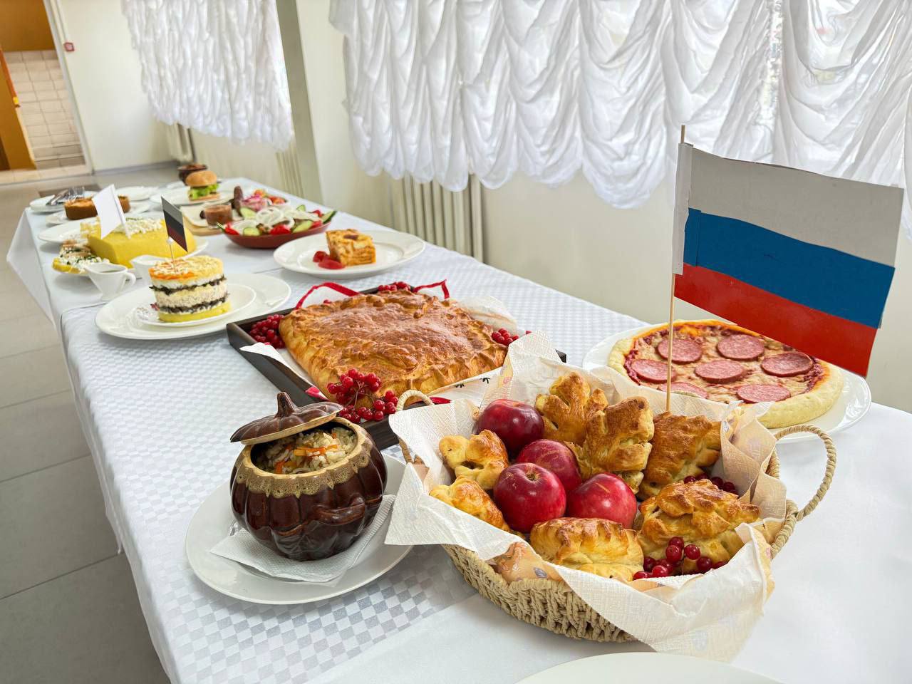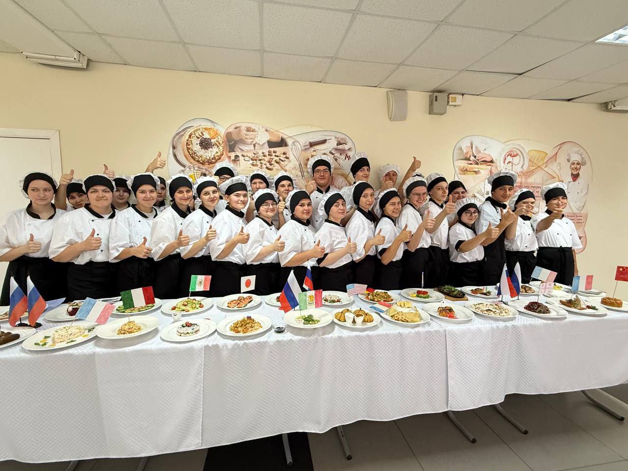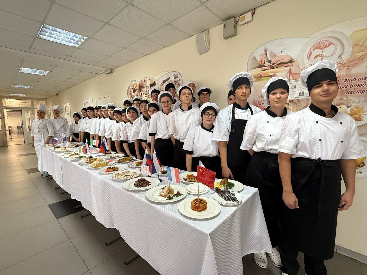 В рамках Дня повара состоялась гастрономическая выставка "Кухня народов мира", на которой обучающиеся отделения общественного питания представили кулинарные и кондитерские изделия разных стран.Одними из самых запоминающихся блюд стали: кулебяка, украшенная калиной, фигурные пироги и класический чизкейк.