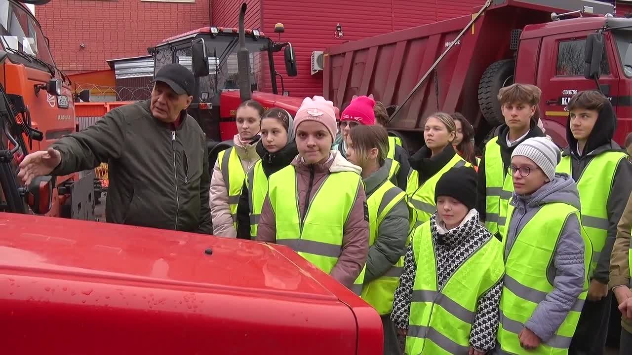 Ребята увидели, как работает одна из городских коммунальных служб, какая техника и оборудование есть на предприятии, чтобы убирать улицы, косить траву, вывозить мусор и бороться с гололедом.