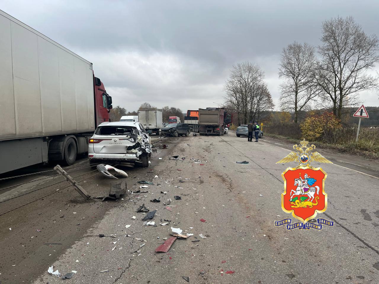 Два грузовика и семь легковых машин столкнулись на Домодедовском шоссе в Подмосковье