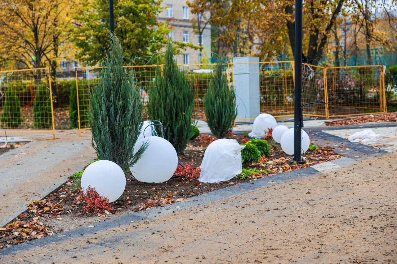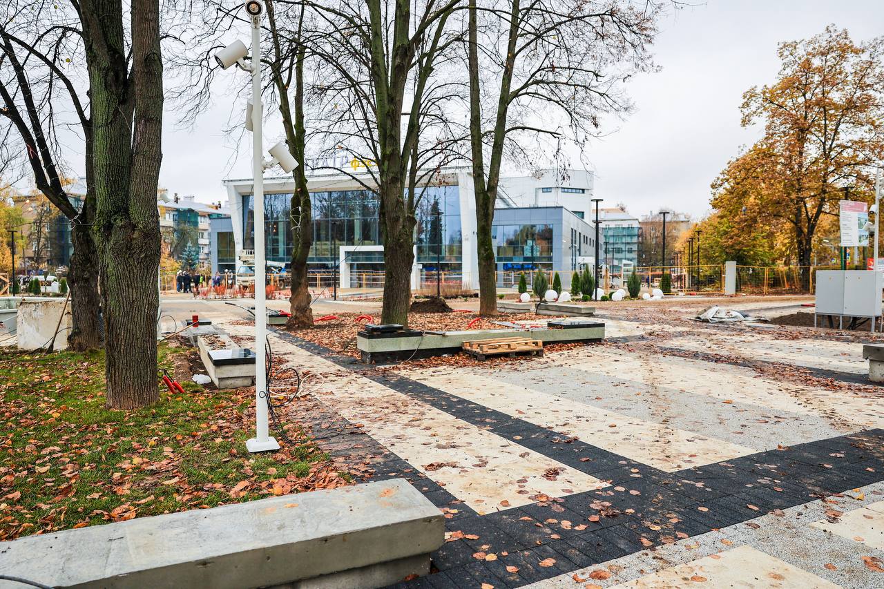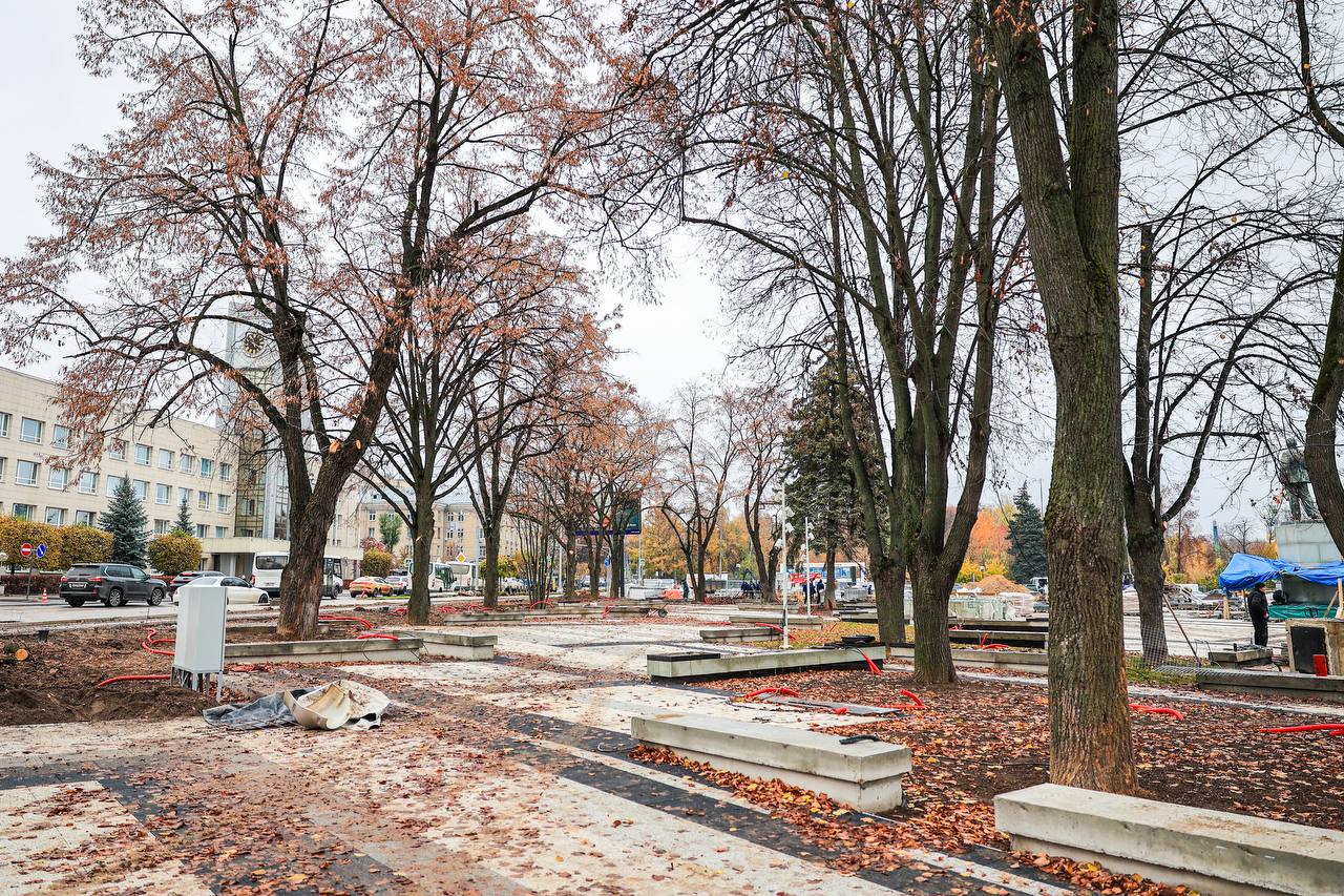 В сквере возле театра ведутся устройство уличного освещения и тротуаров, облицовка лавочек. На следующей неделе планируется высадка зеленых насаждений. Кроме того, подрядчик приступил к работам на парковке.