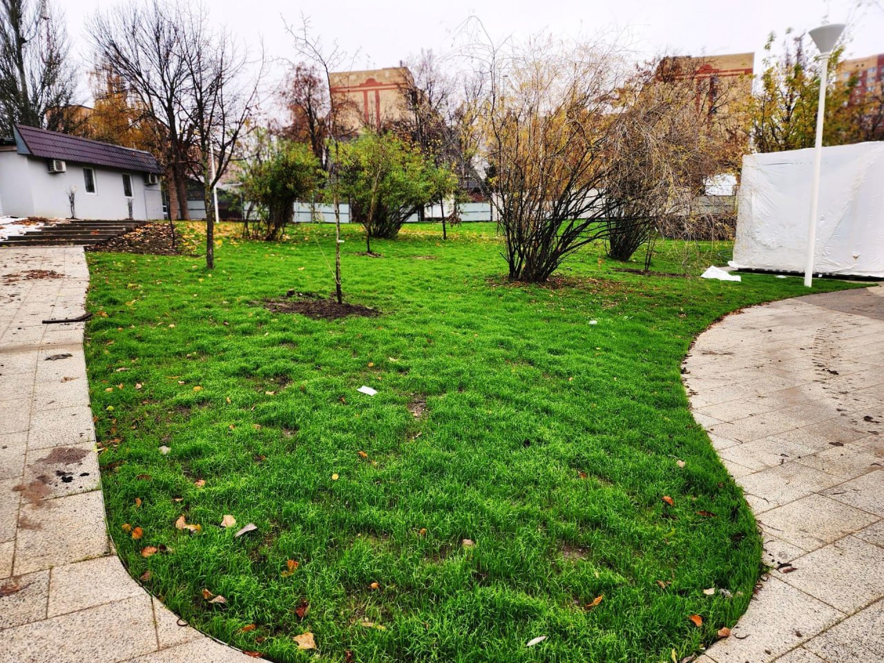 Для будущего уюта и красоты на территорию завезли посадочный материал: цветы, кустарники и деревья - часть газона уже посеяна.