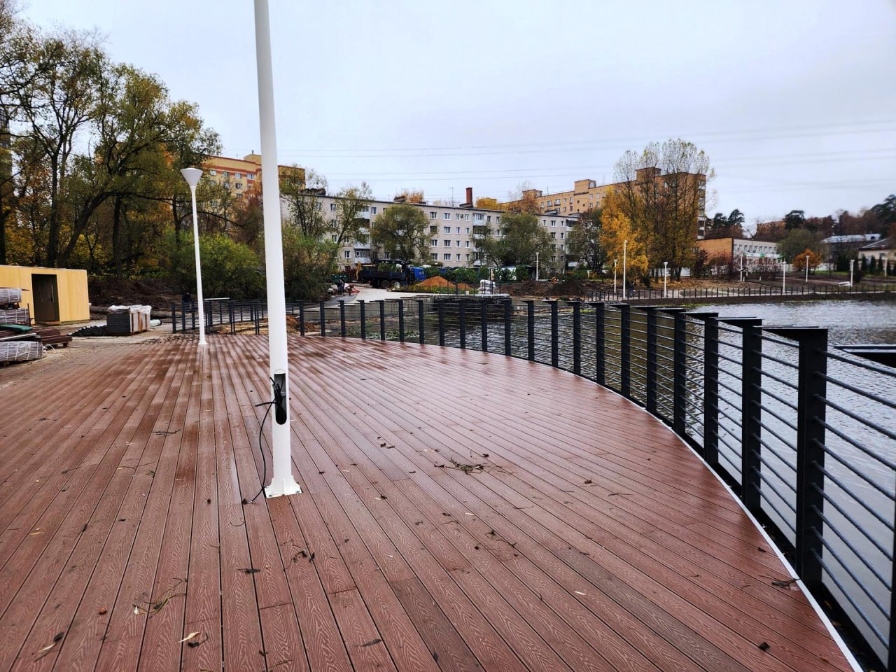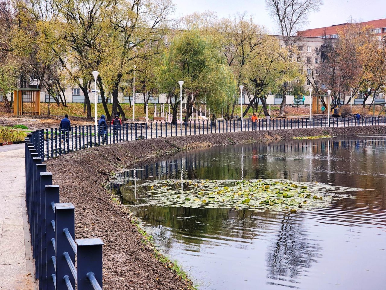 Сейчас основное внимание уделяется очистке самого озера: водоём избавляют от лишней растительности и накопившегося мусора. Параллельно обустраивают береговую линию. Активно ведётся монтаж деревянных настилов – будущих зон отдыха у воды. Уже готовы два таких настила, на одном из которых появились первые лежаки. Завершён монтаж спортивной площадки, а поблизости скоро появятся уютные беседки и качели.