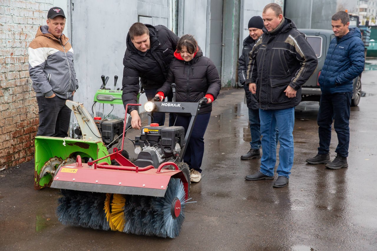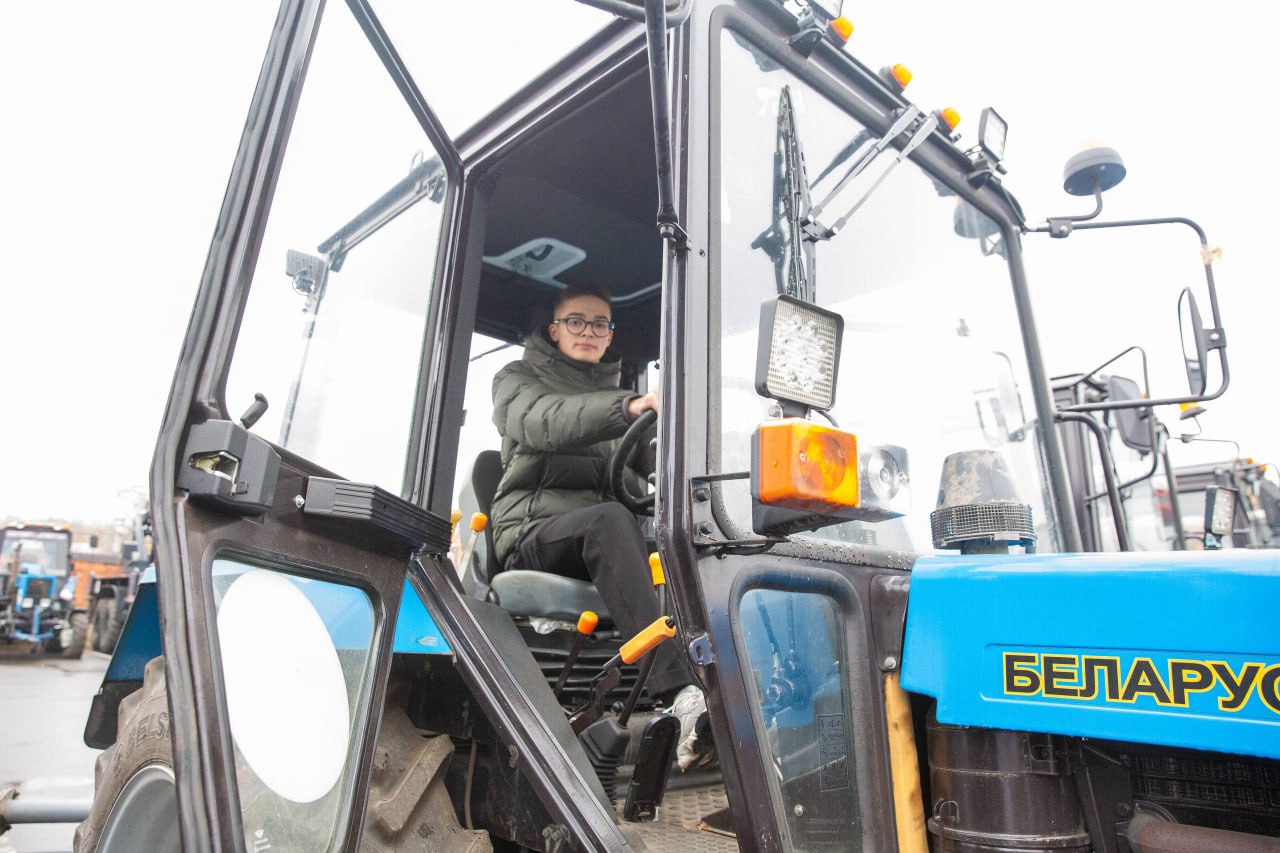 Познакомиться с техникой школьникам разрешили поближе: посидеть за рулём трактора и КАМАЗа, завести двигатель, попробовать управлять новой мотощёткой и снегометателем роторного типа.