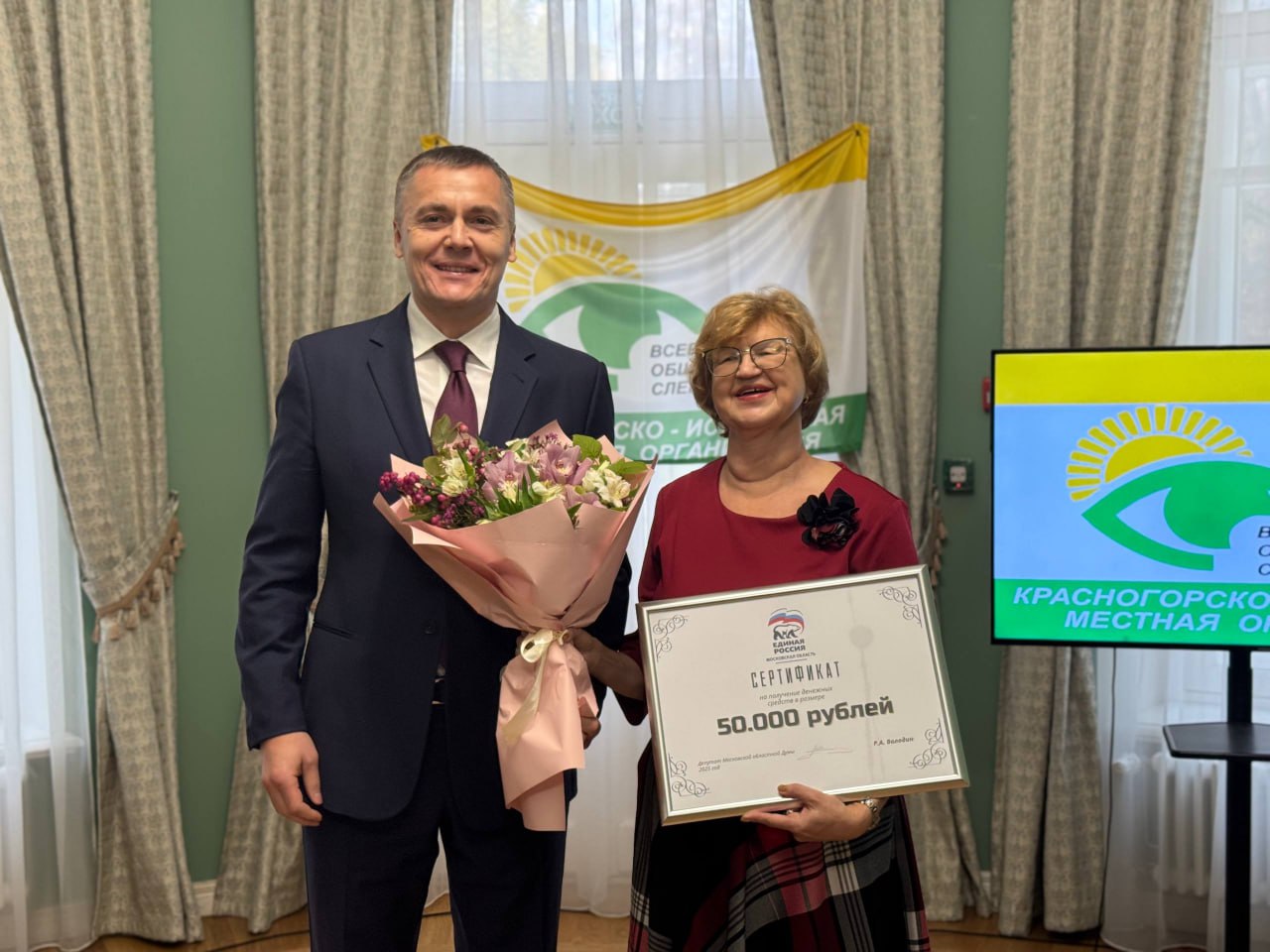 Также депутат Московской областной Думы Роман Володин передал председателю местной организации Оксане Куликовой сертификат в рамках партийного проекта «Старшее поколение».