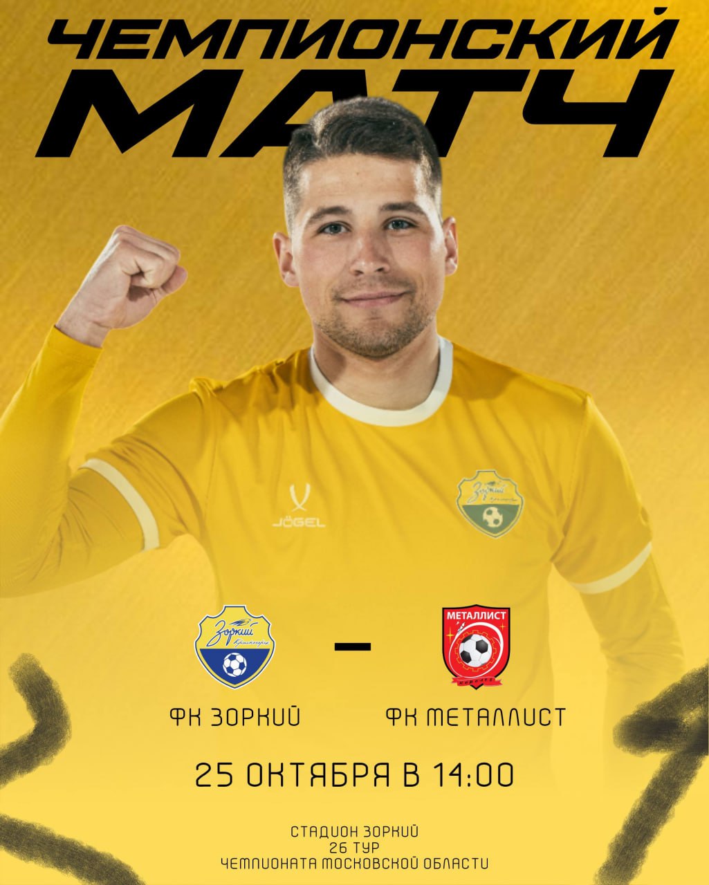 В эту субботу в 14:00 на стадионе «Зоркий» сойдутся две команды — ФК «Зоркий» и ФК «Металлист» (Королев).