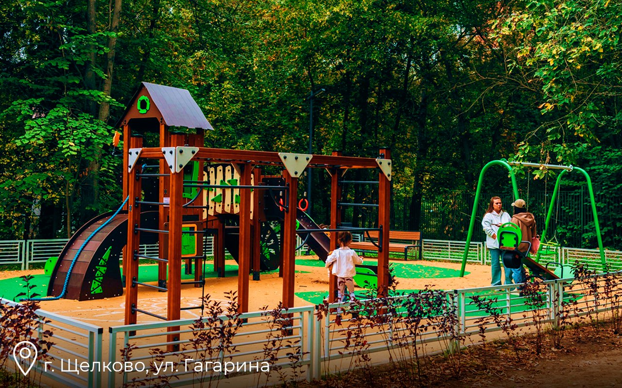Также, например, обновили площадку в Щелкове на ул. Гагарина, где досуг маленьких жителей стал более активным и познавательным.