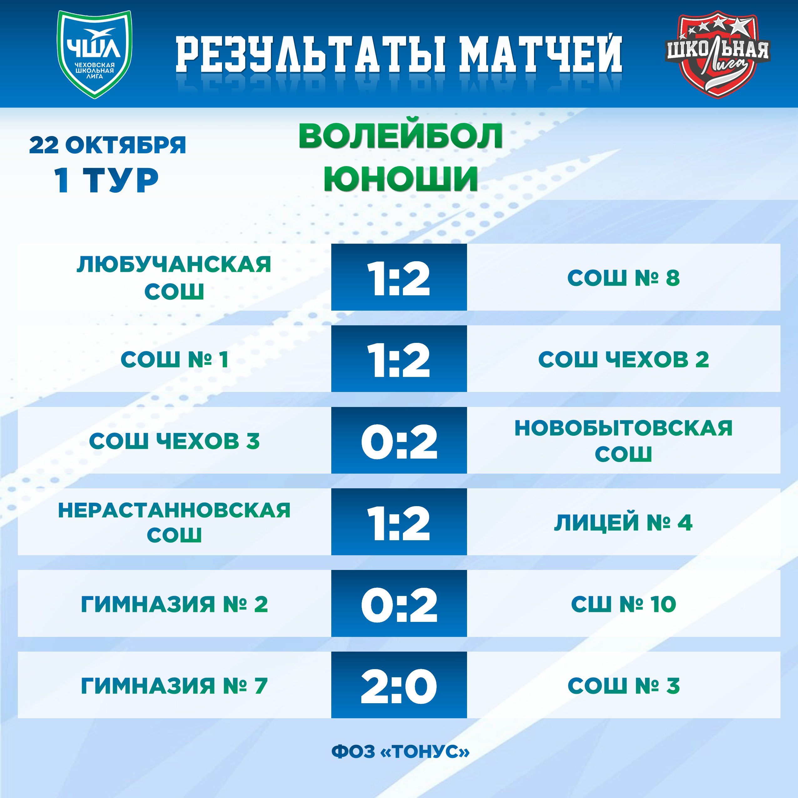Результаты первых матчей Чеховской Школьной Лиги по волейболу среди юношей!