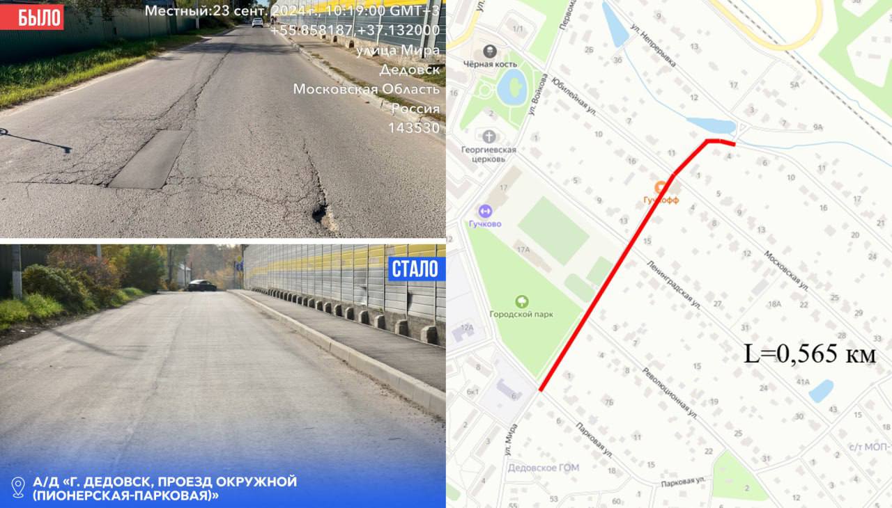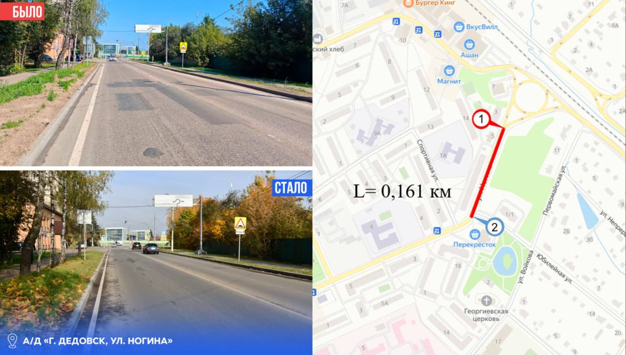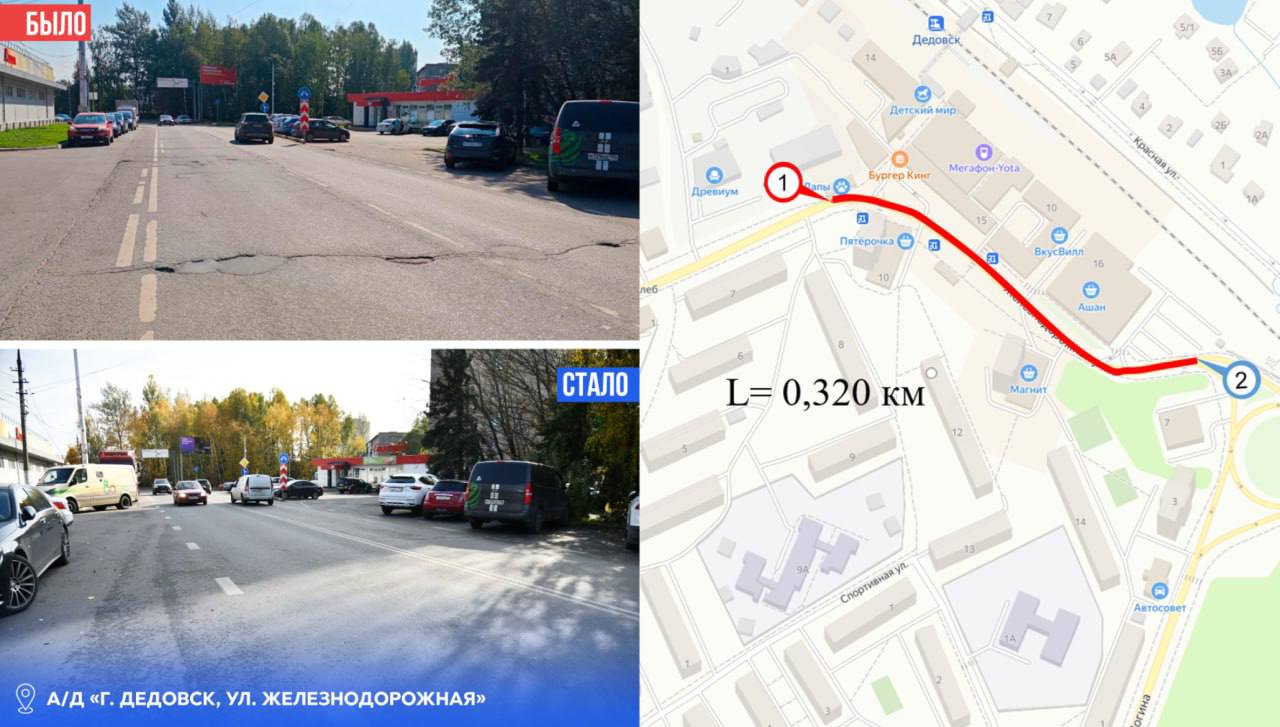 В 2025 году в плане ремонта было 66 участков муниципальных и региональных автомобильных дорог, общей протяженностью более 60 километров. Из них 9 участков – в городе Дедовске: