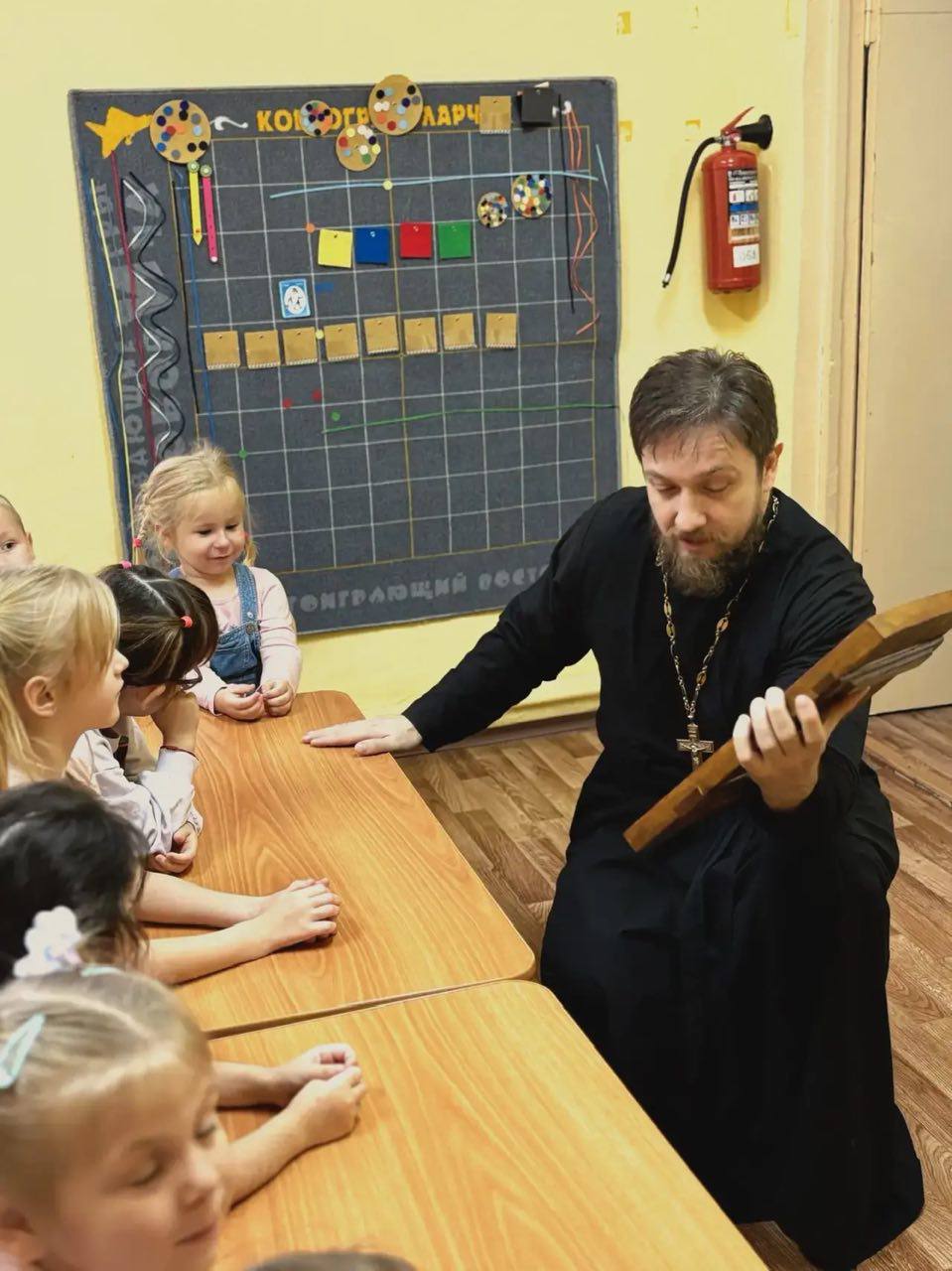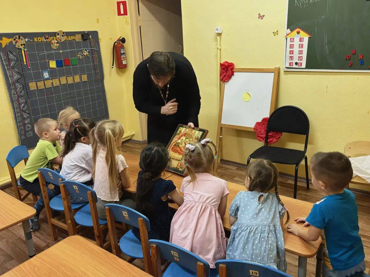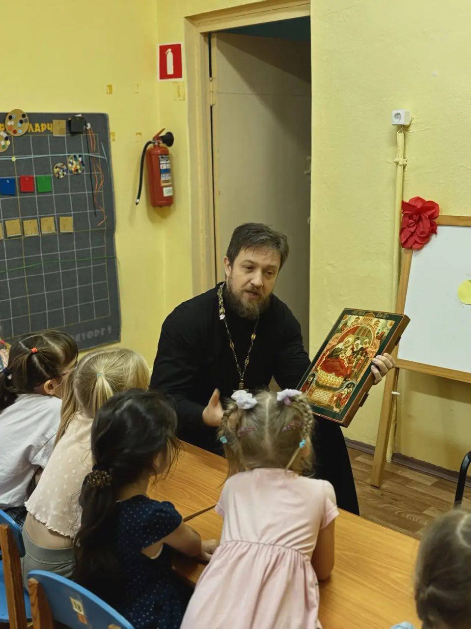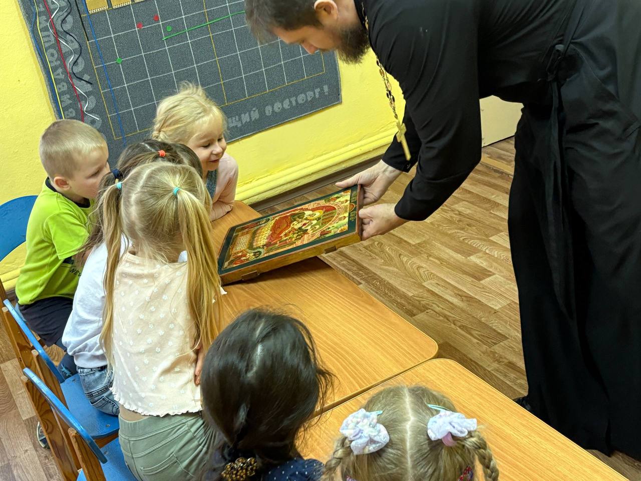 Батюшка также представил детям икону и рассказал о её значении, о том, почему иконы создают и как они помогают в молитве и общении с Богом. Дети проявили внимание и любопытство, задавали вопросы и искренне интересовались услышанным.