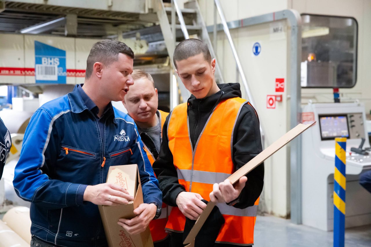 Сотрудники предприятия «Архбум» рассказали участникам экскурсии о деятельности завода по производству гофроупаковки, показали технологические процессы, а также обсудили возможность трудоустройства.