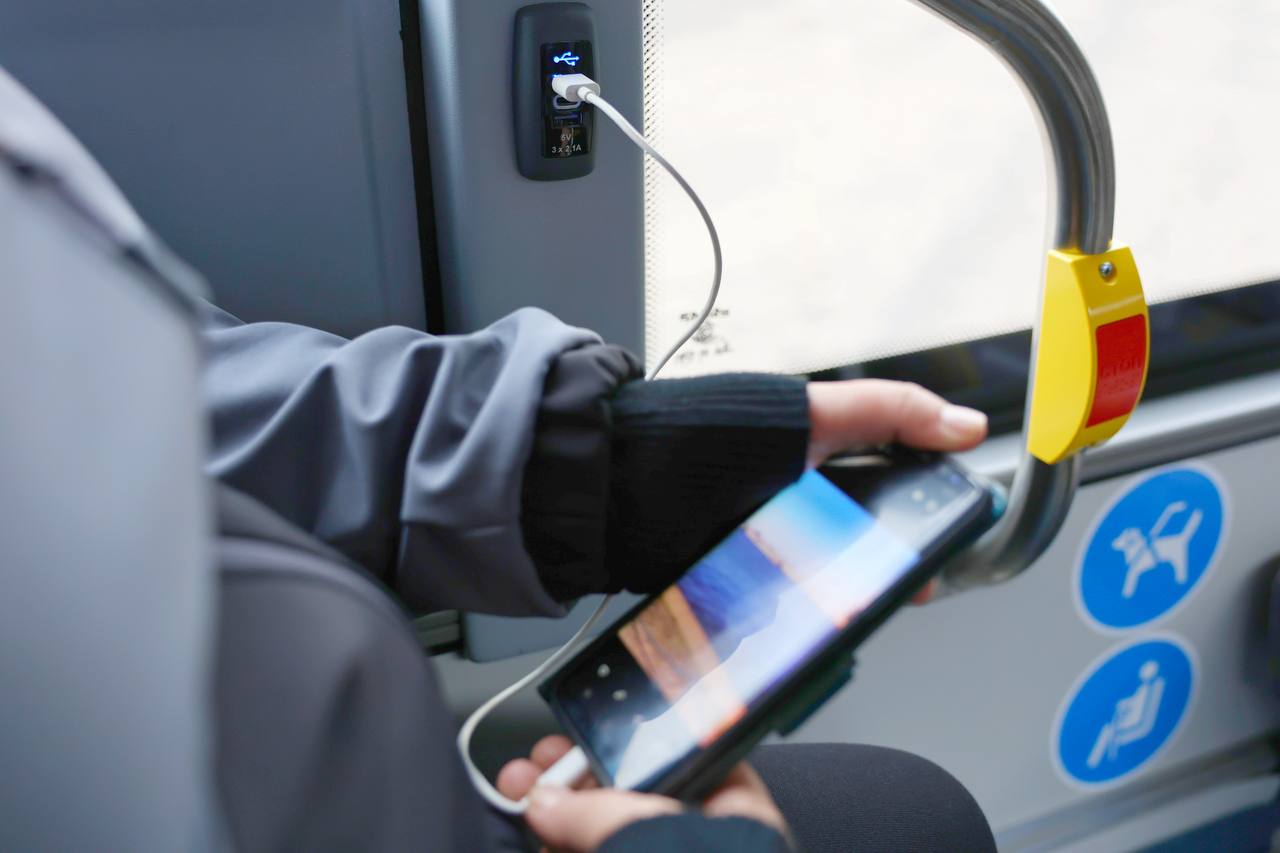 Транспортные средства оснащены современными системами и технологиями, которые повышают комфорт и безопасность пассажиров. В салоне установлены USB-зарядки и разъемы. Для удобства маломобильных пассажиров предусмотрен откидной пандус.