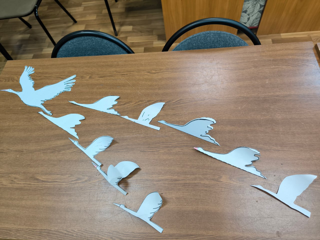 Ребята дружно вырезали из белой бумаги символ этого праздника - Белых Журавлей.